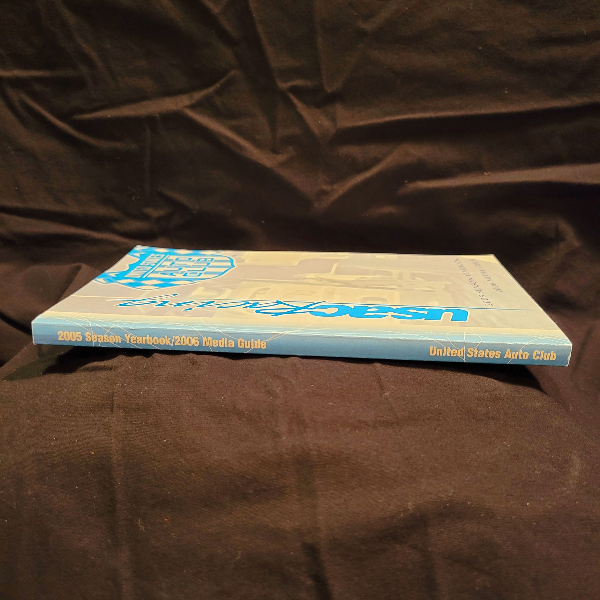 This 240 page book is in good condition. It contains a few color photos. All pages appear to be intact. No rips or tears. It details the 2005 United States Auto Club season and lists media members for the 2006 season.