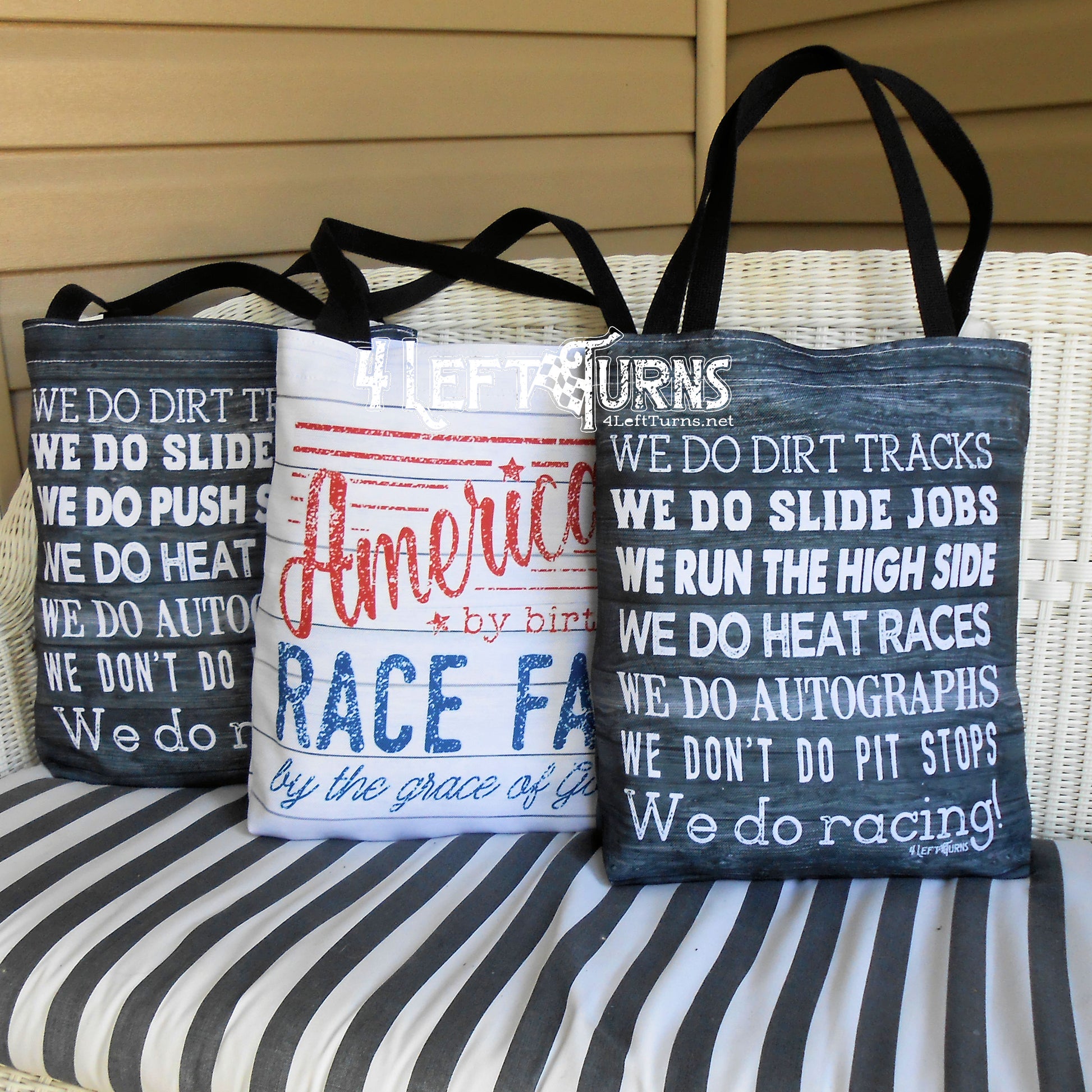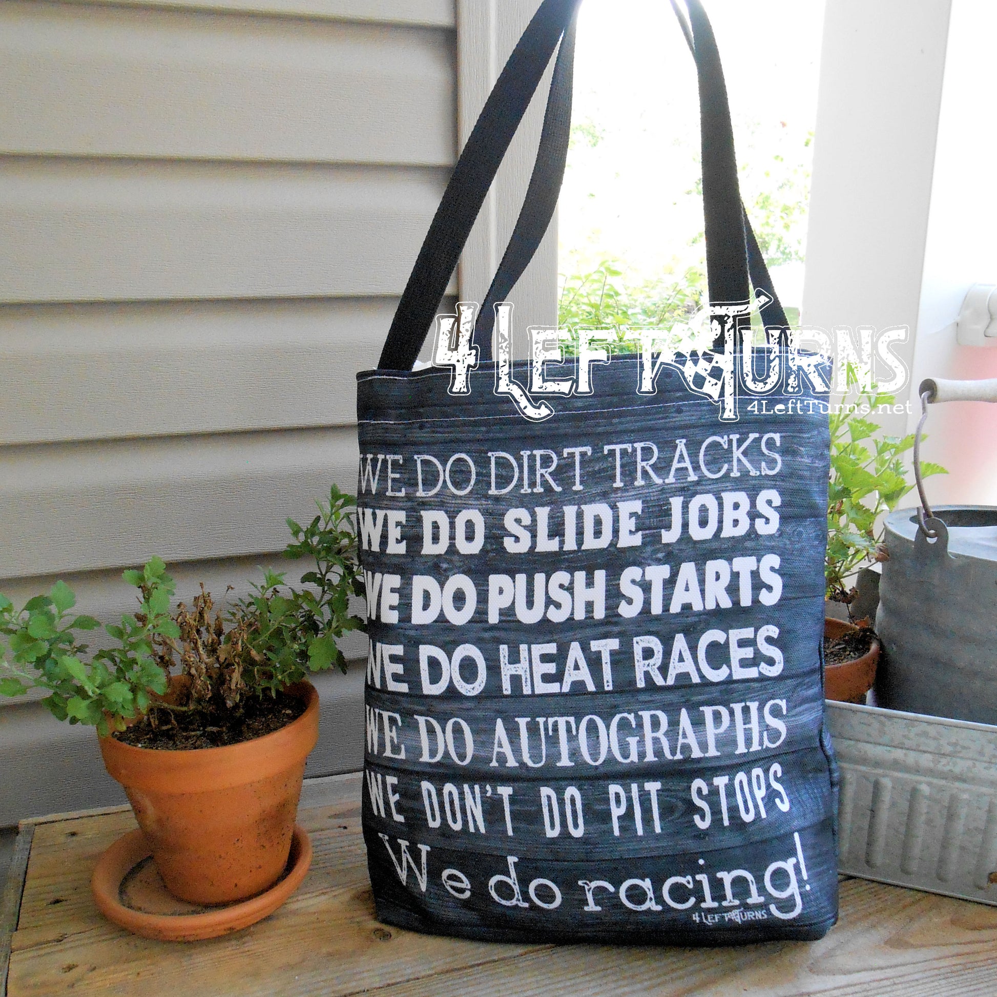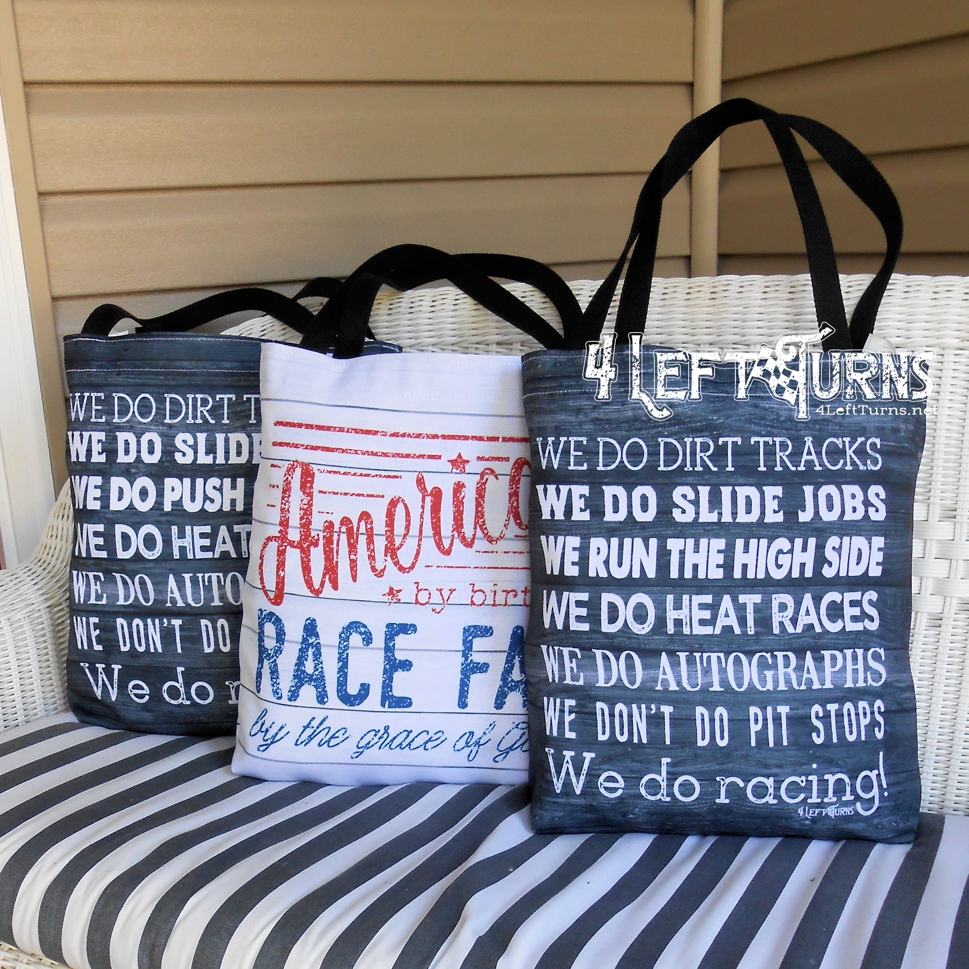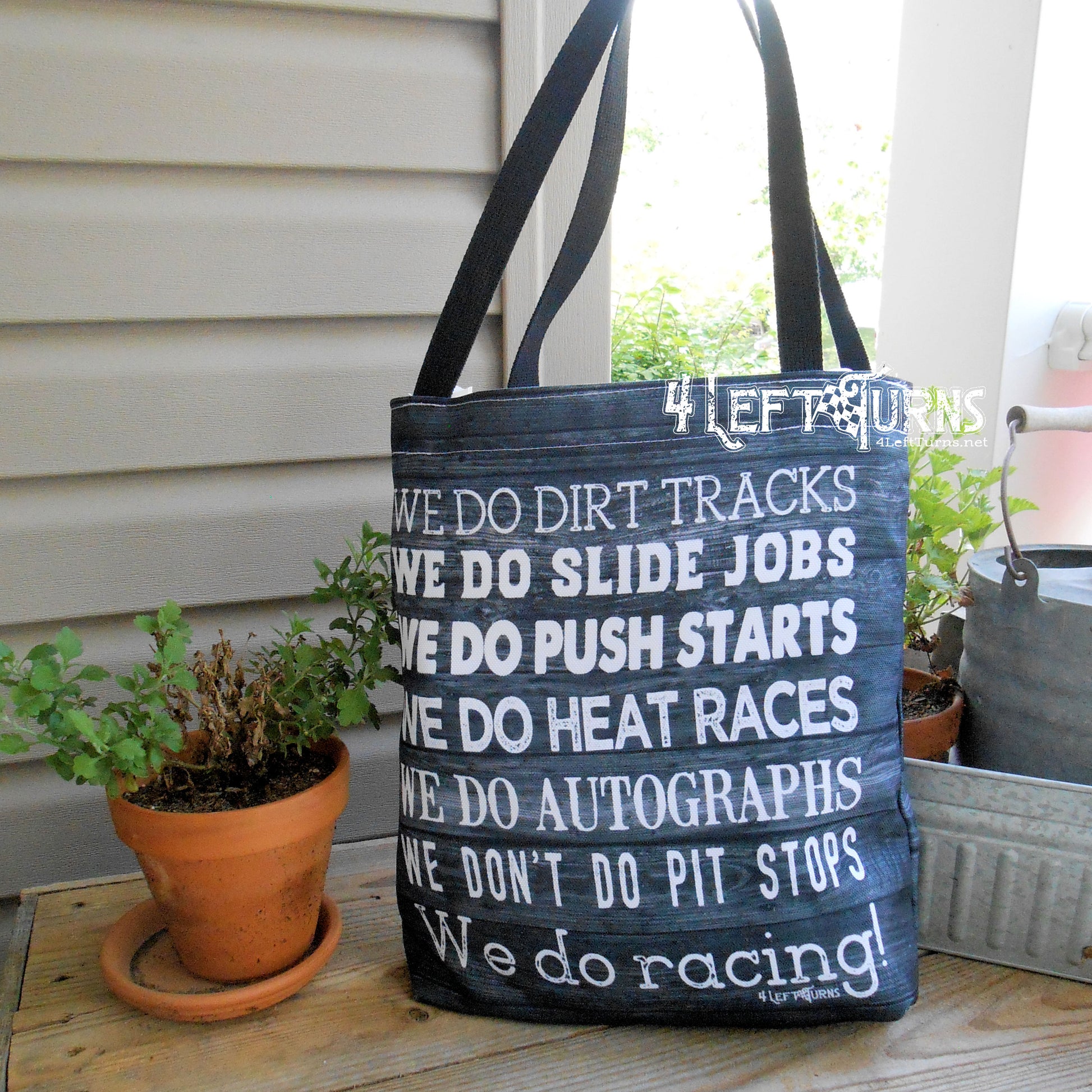 If racing is your bag, the 4 Left Turns tote is for you! Each bag is printed in rich, vibrant color. Four of our designs use the photography of Greg and Stacy Stanek of G & S Stanek Photography.