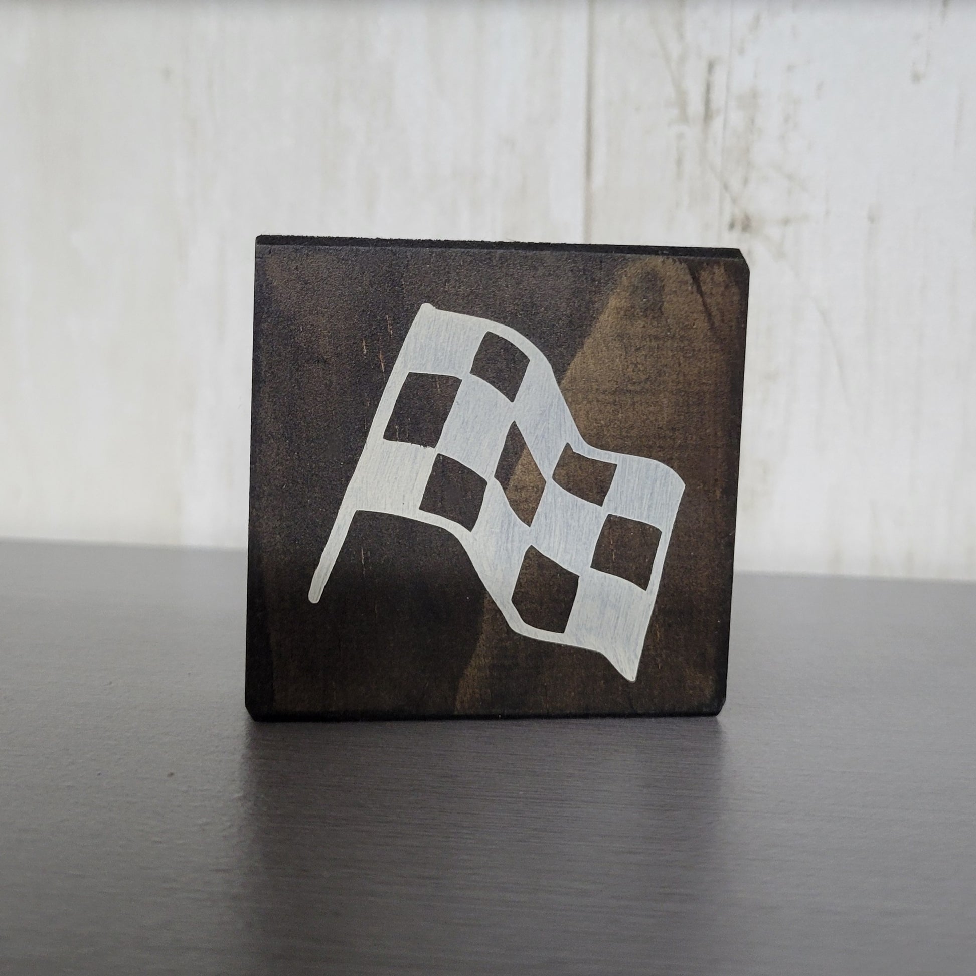 Measures approximately 2.5 x 2.25 x .75 inches. One available. Sign in photo is the one you will receive. Made of pine.