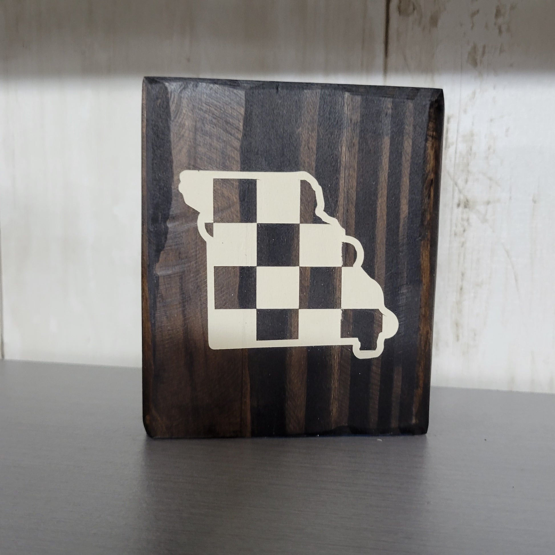 Checkered Missouri Wood Block Scrappy Sign