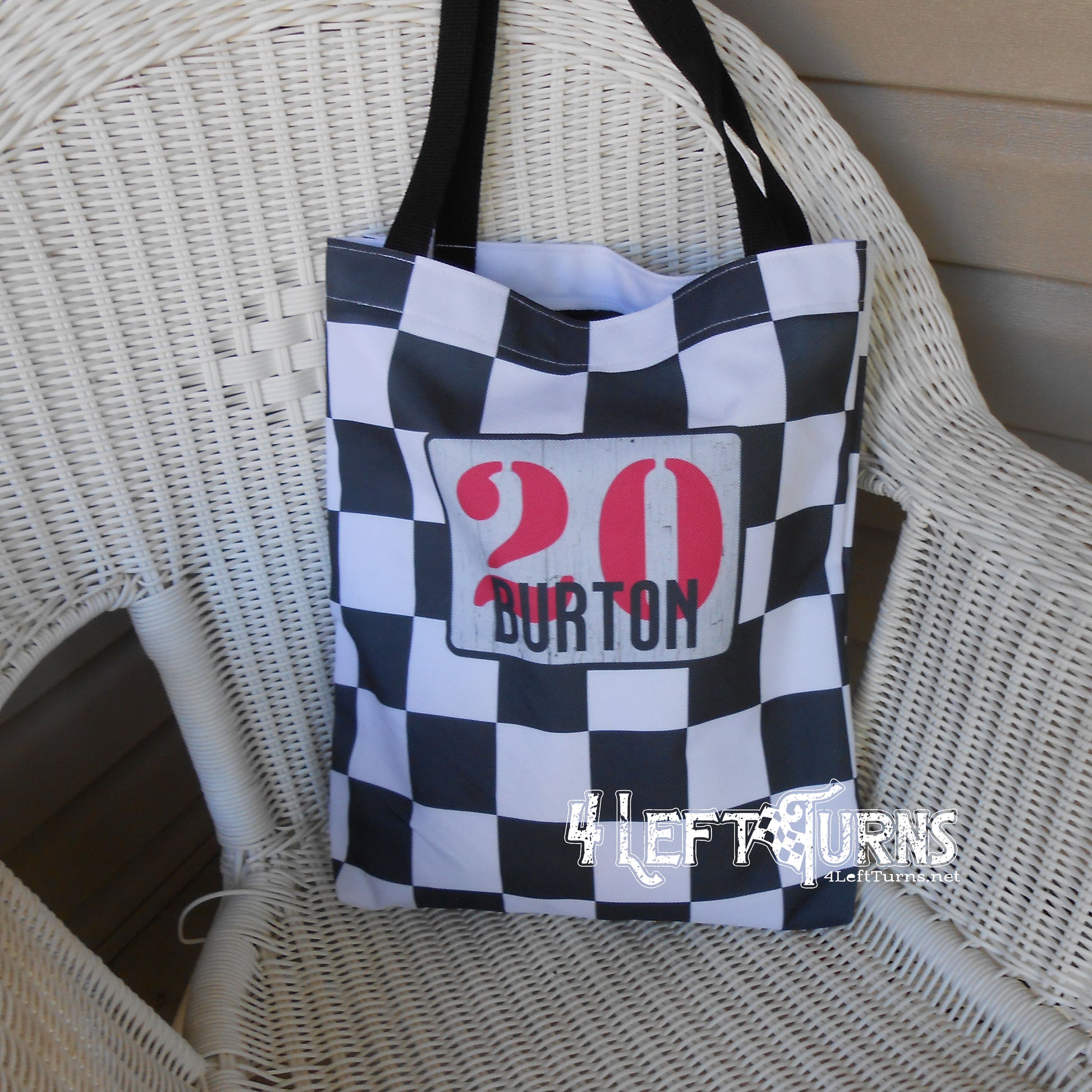 If racing is your bag, the 4 Left Turns tote is for you! Each bag is printed in rich, vibrant color, and features your favorite driver's name and car number on both sides. Colors may vary slightly from those in the photos, due to differences in computers and printers.