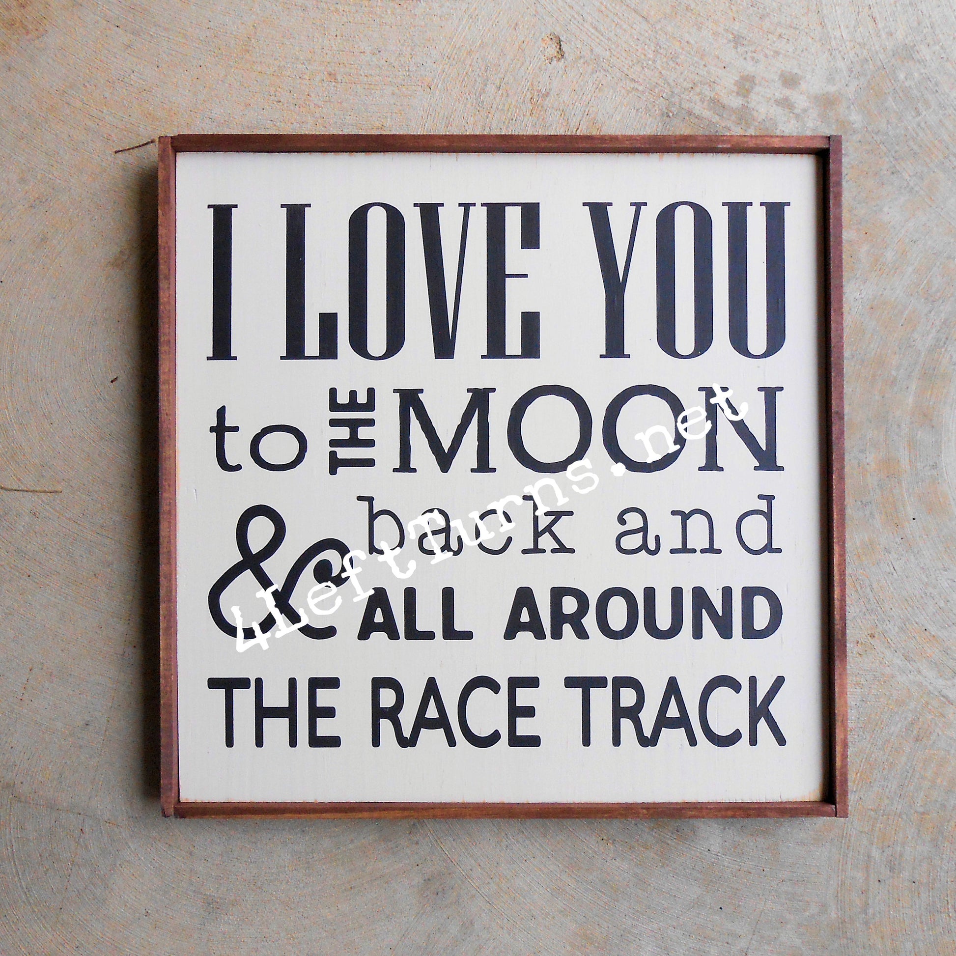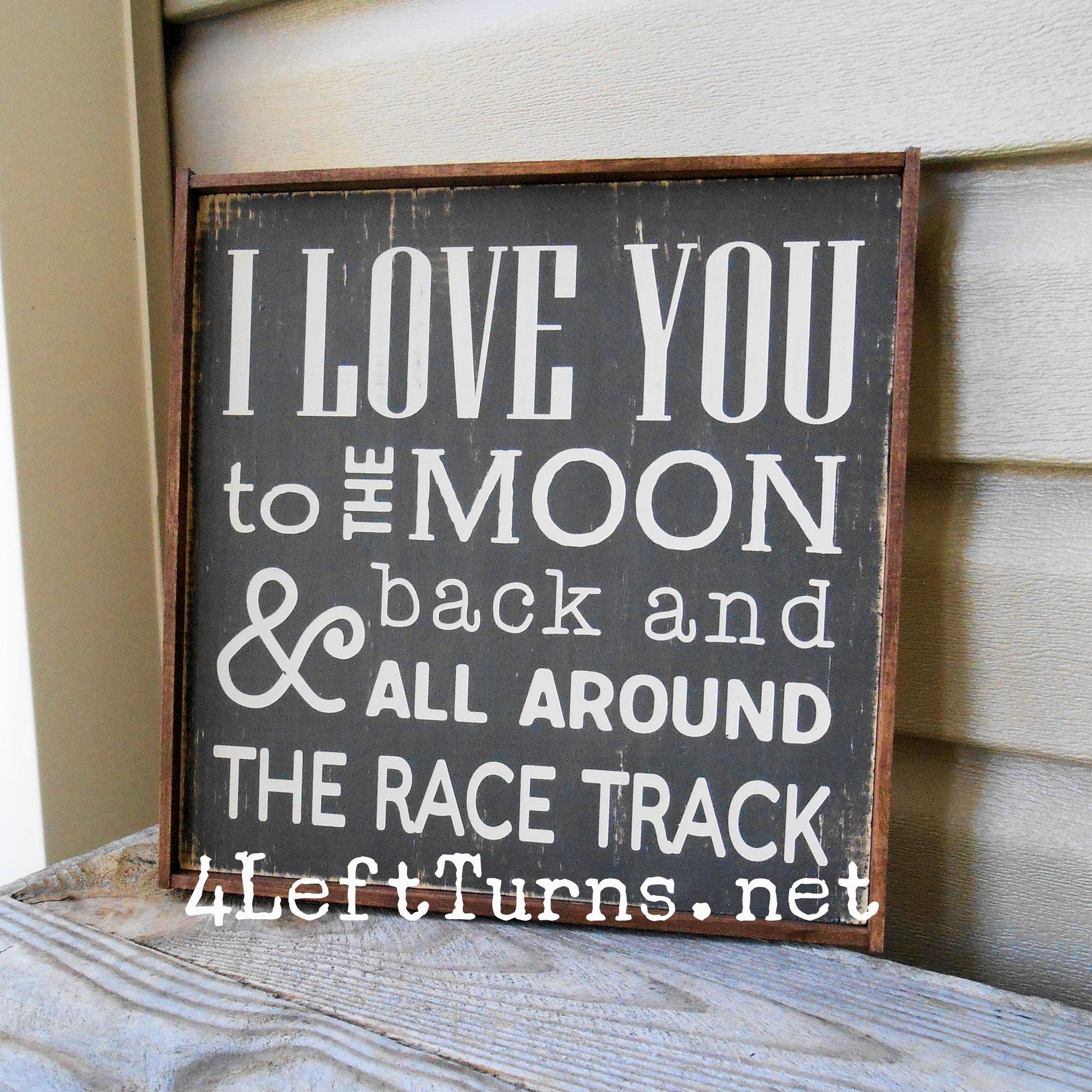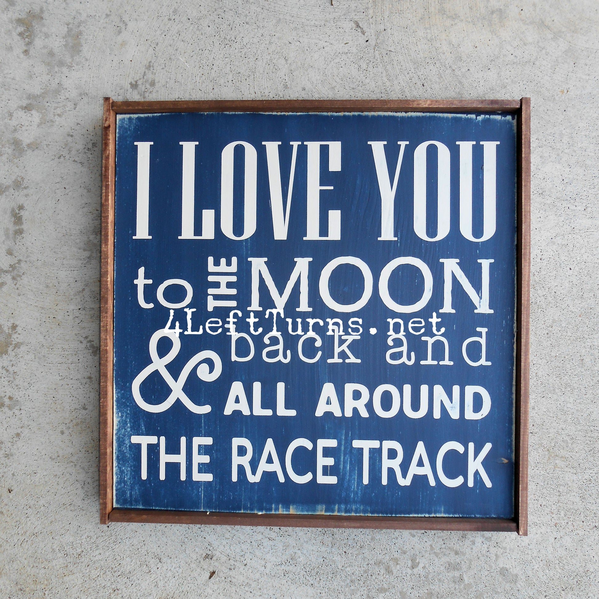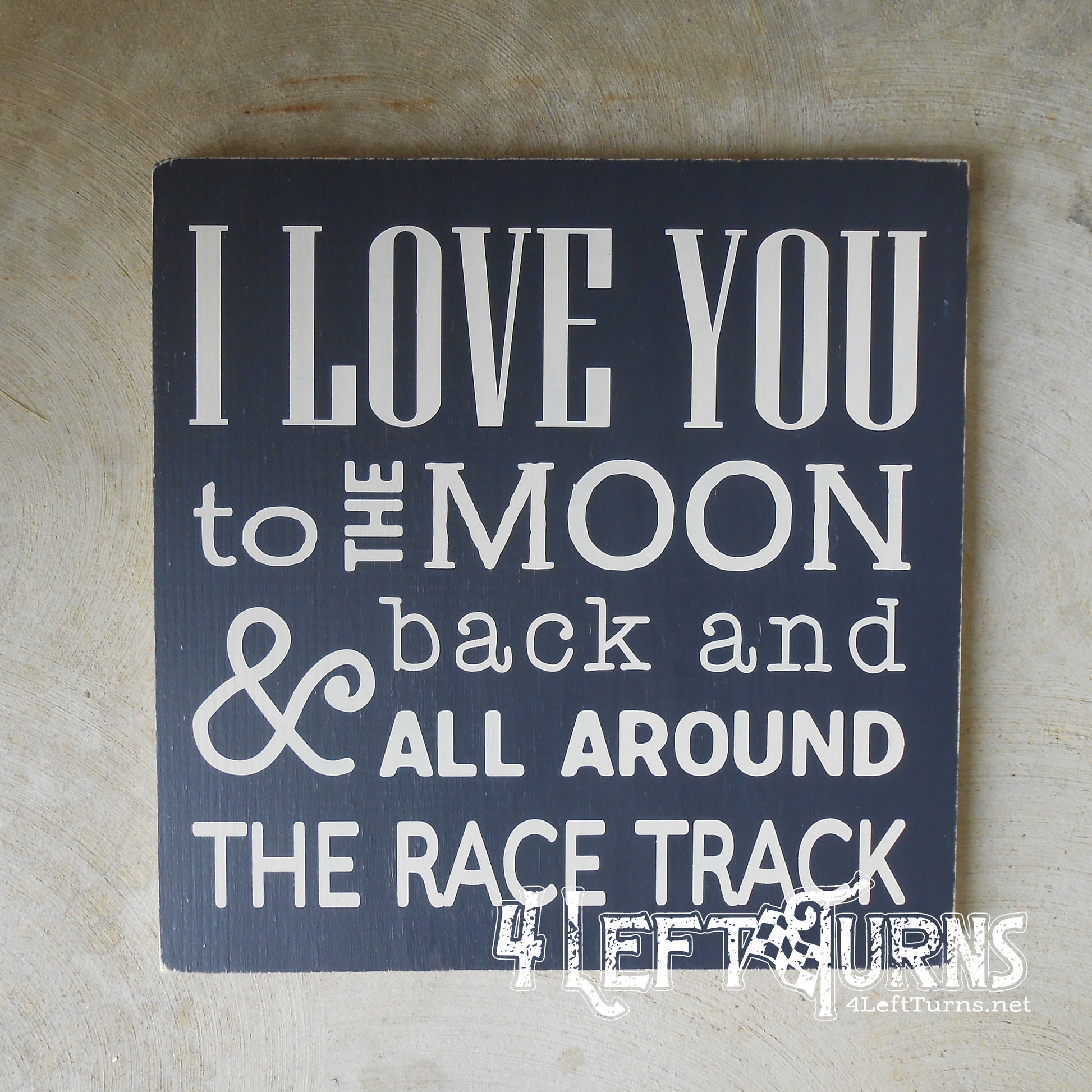 This original 4 Left Turns design is painted on a 9.25 x 9.25-inch wood plank, in your choice of colors. Our signs are distressed for a time worn look and sealed for protection. Available with stained frame or unframed with painted edges. For indoor use only.