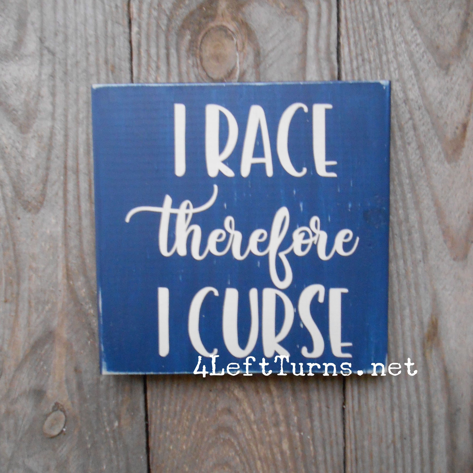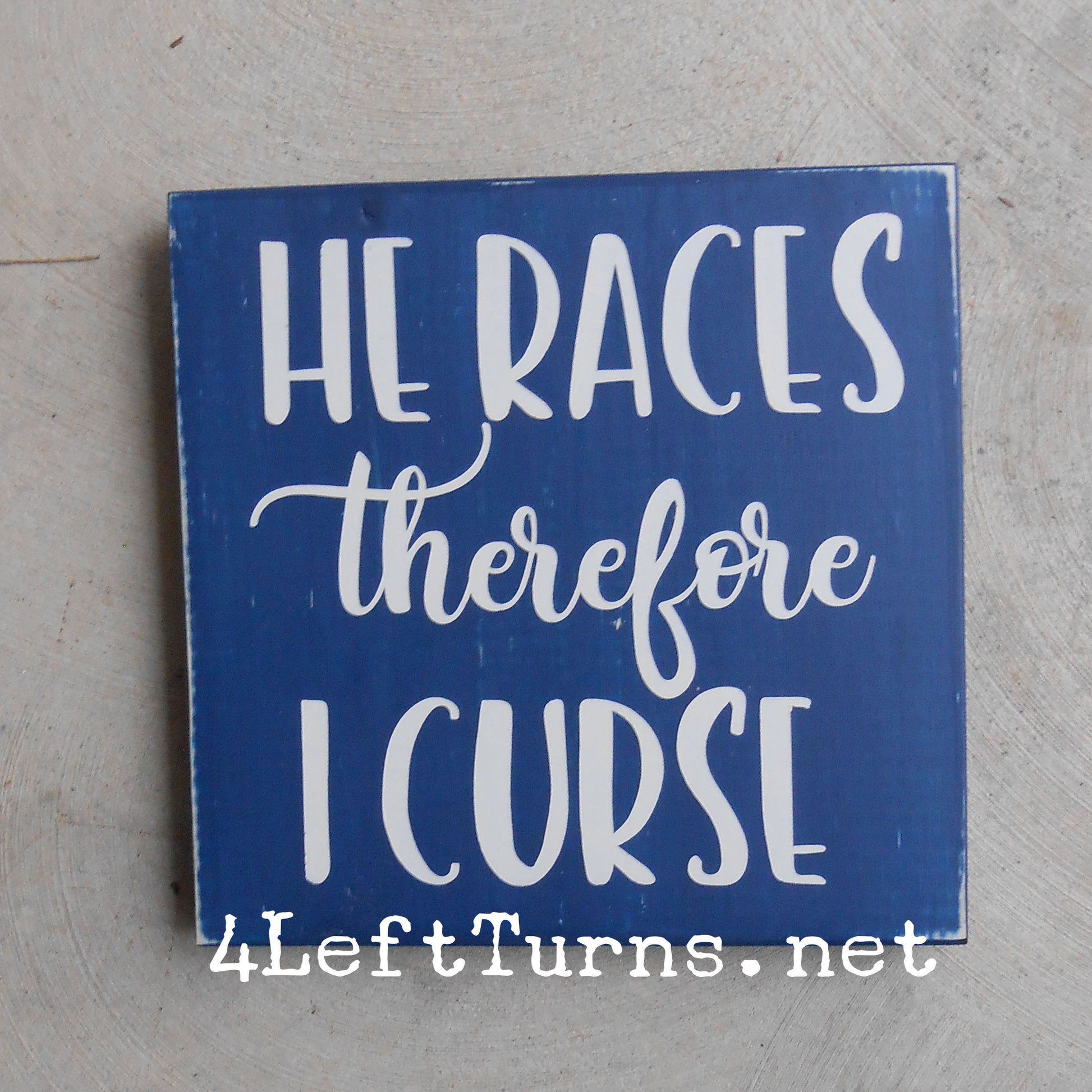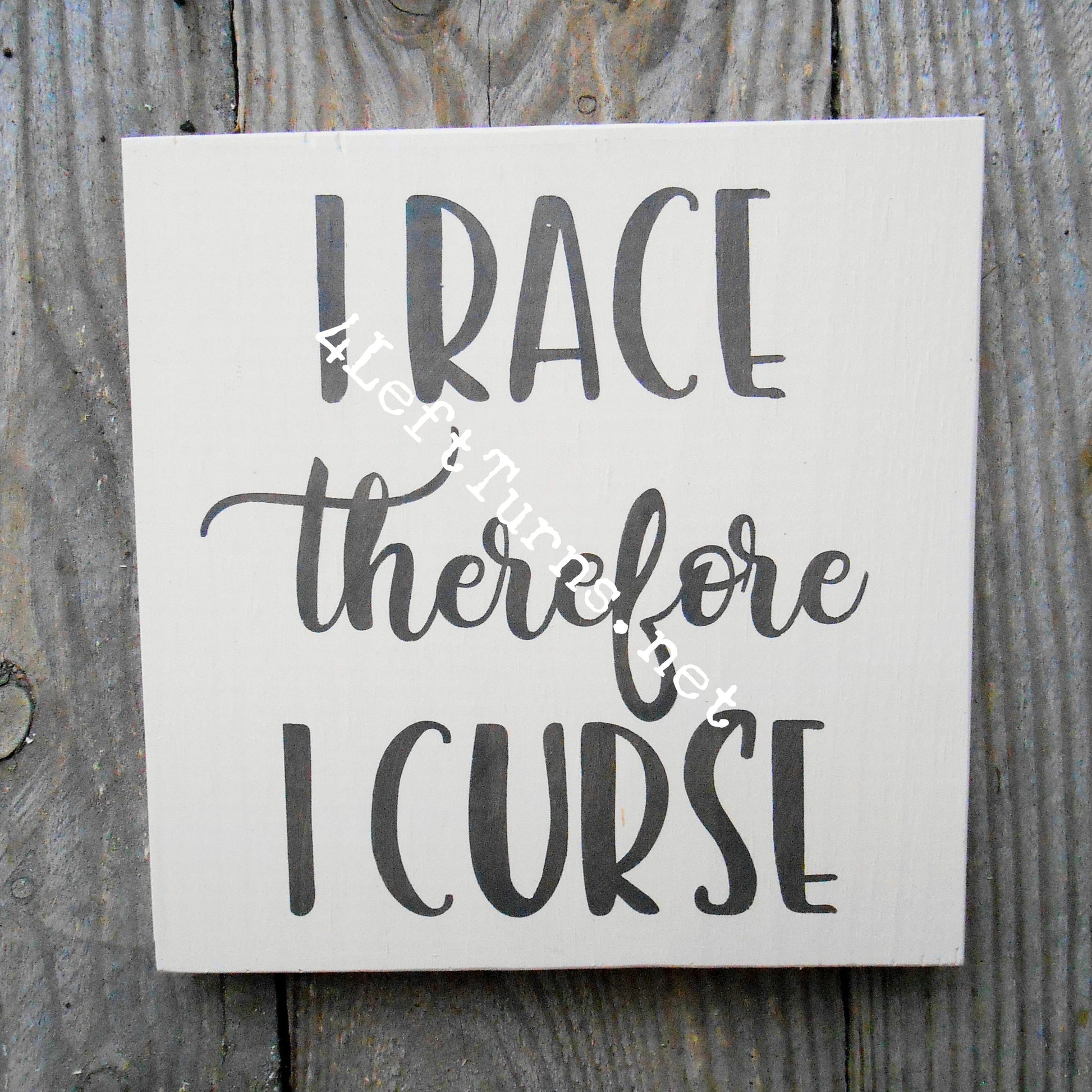 I Race/He Races Therefore I Curse Original Painted Wood Sign