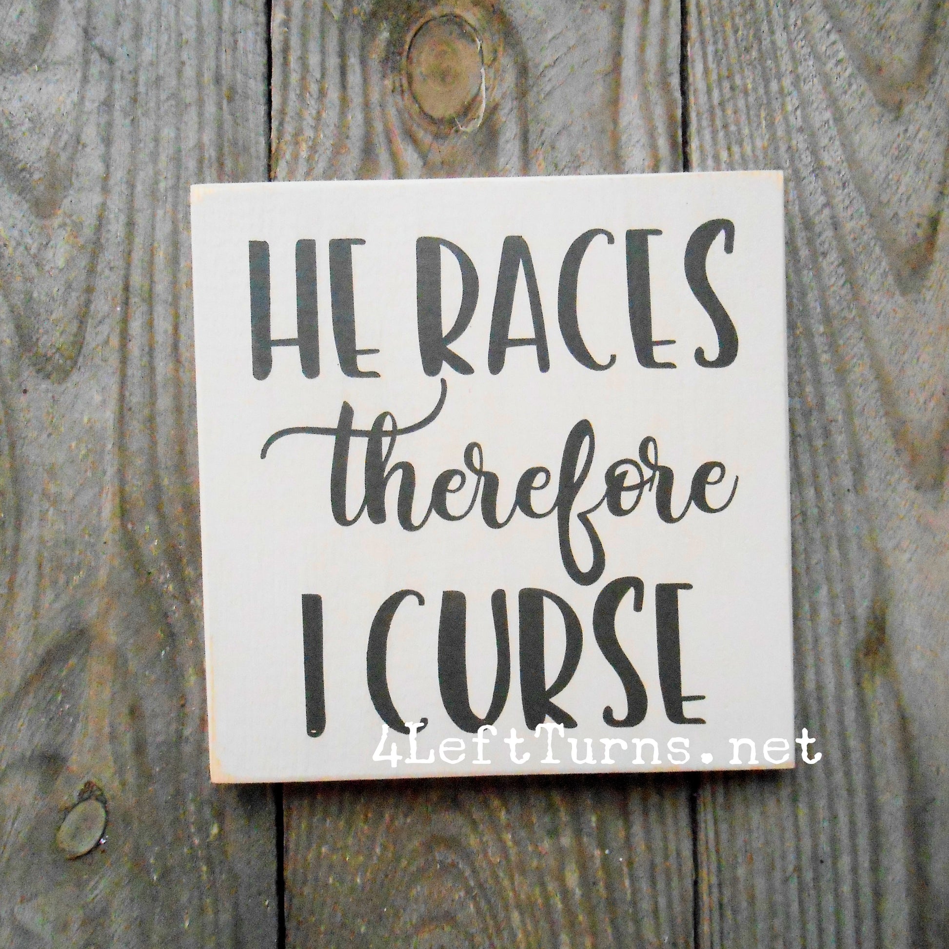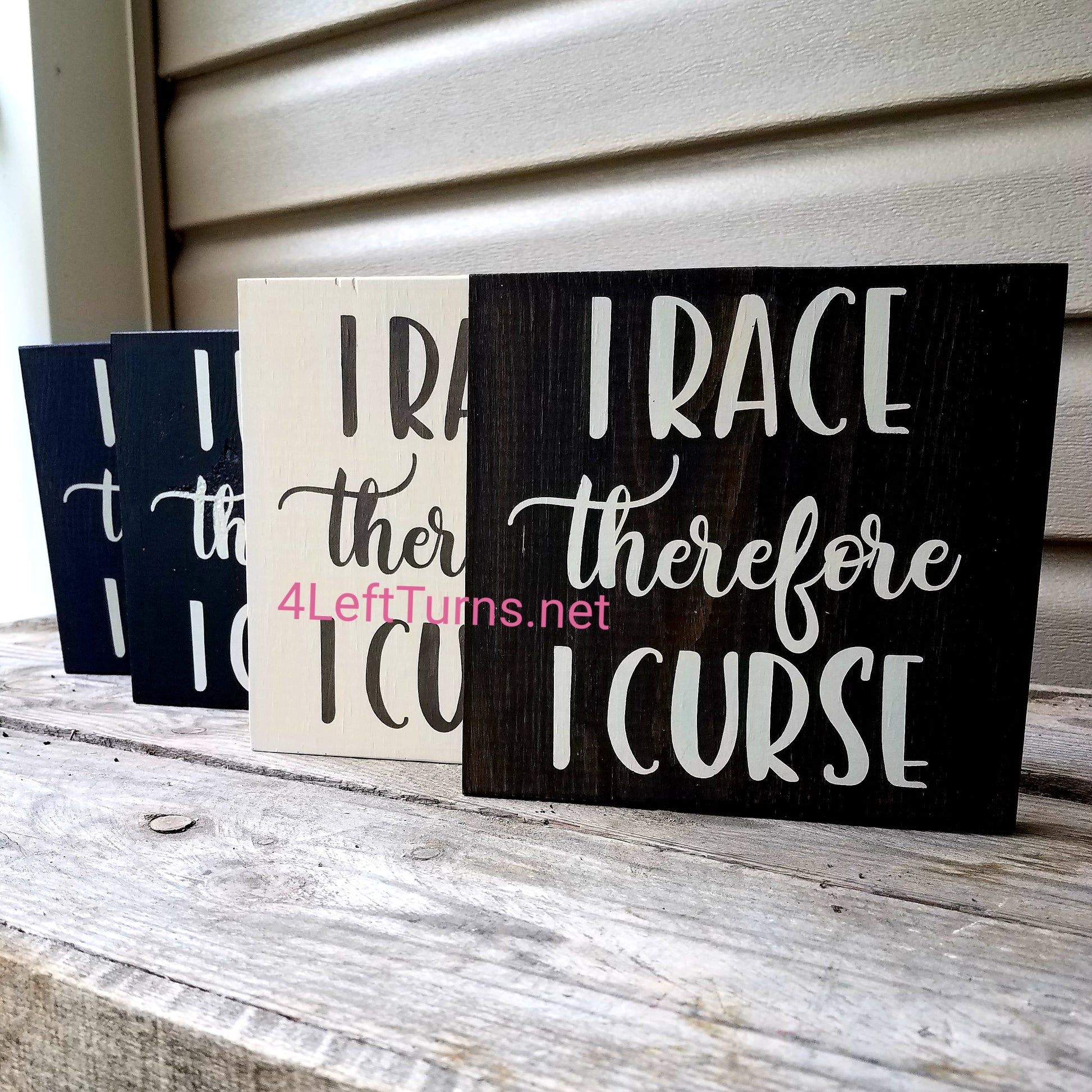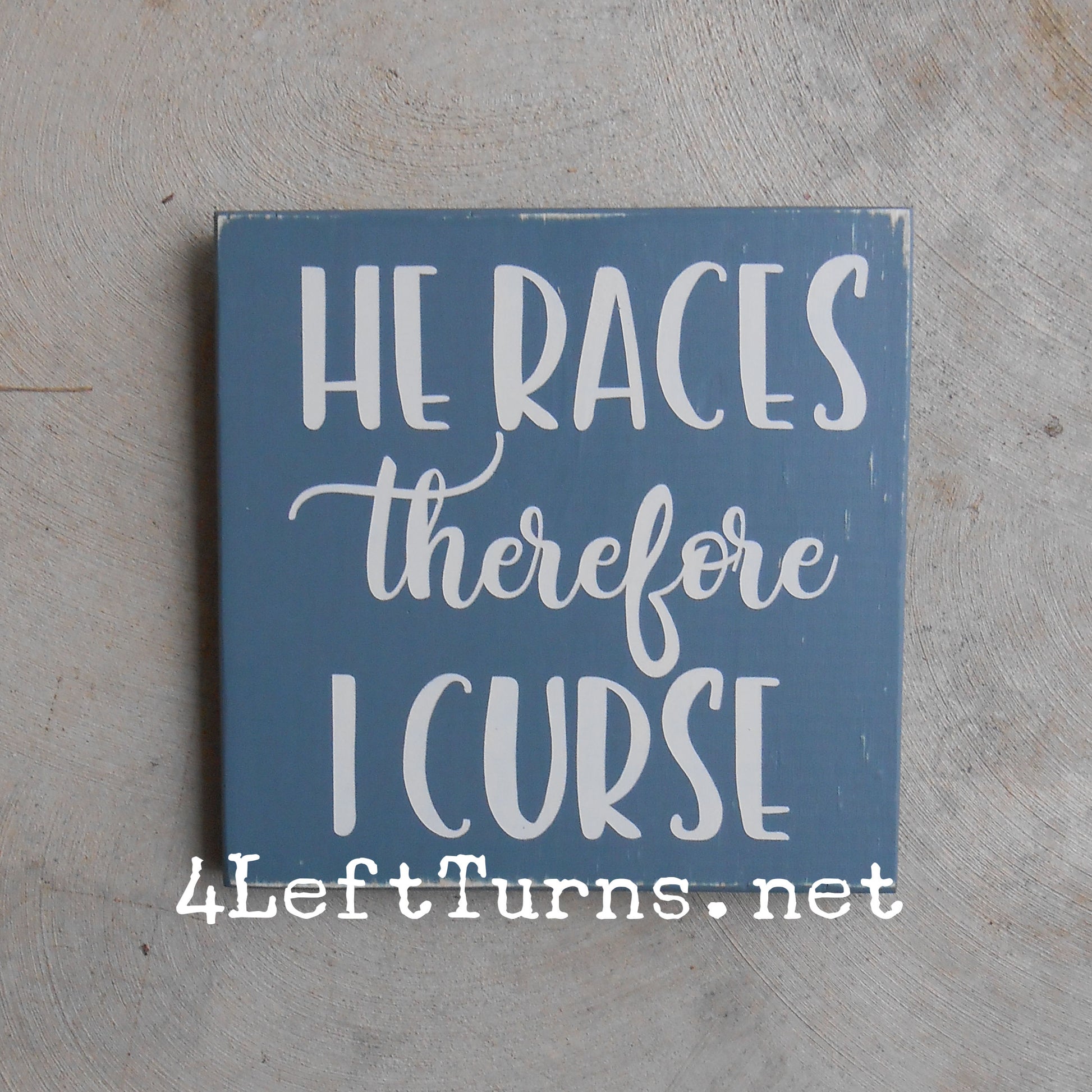 I Race/He Races Therefore I Curse Original Painted Wood Sign