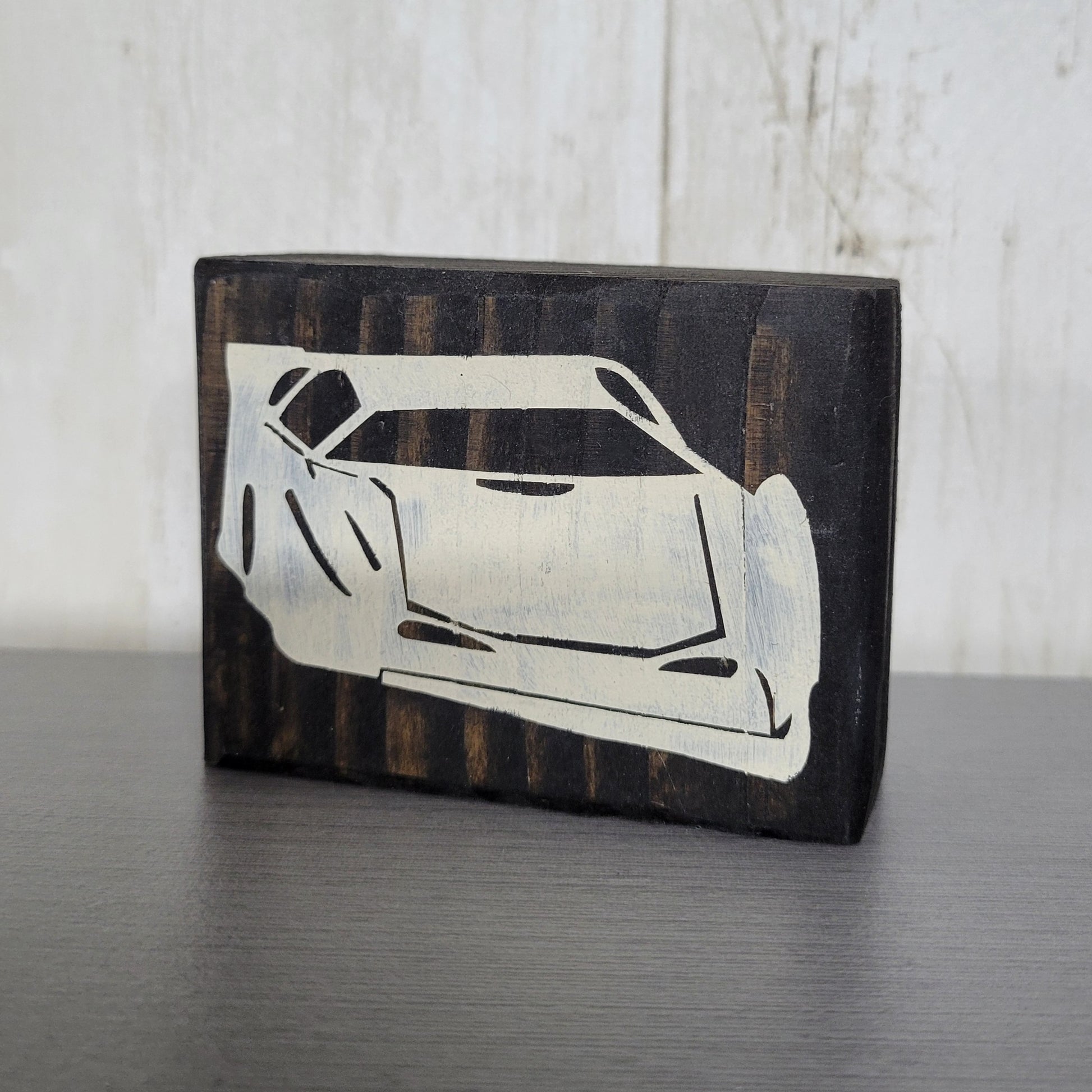 Measures approximately 3.25 x 2.5 x 1.25 inches. One available. Sign in photo is the one you will receive. Made of pine.