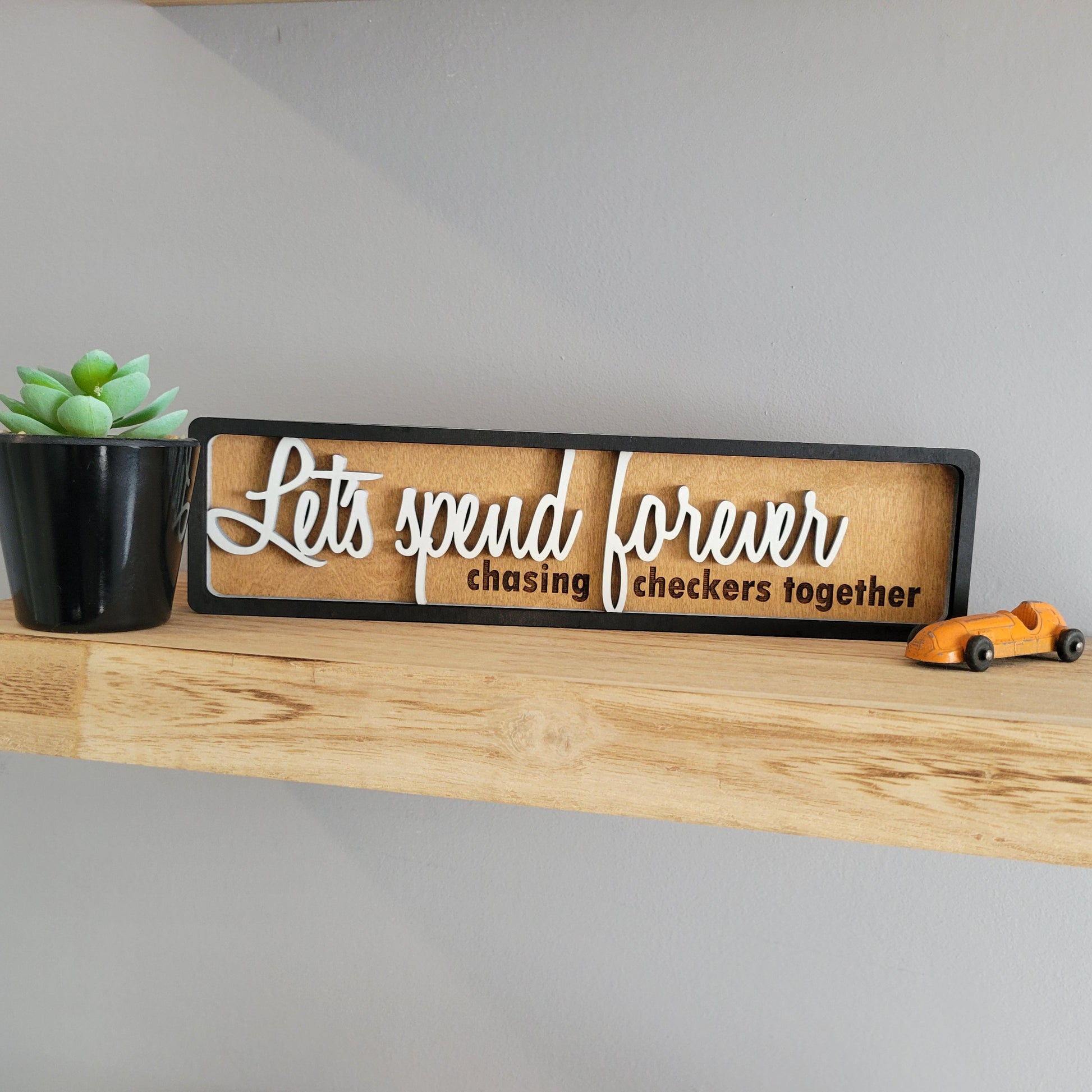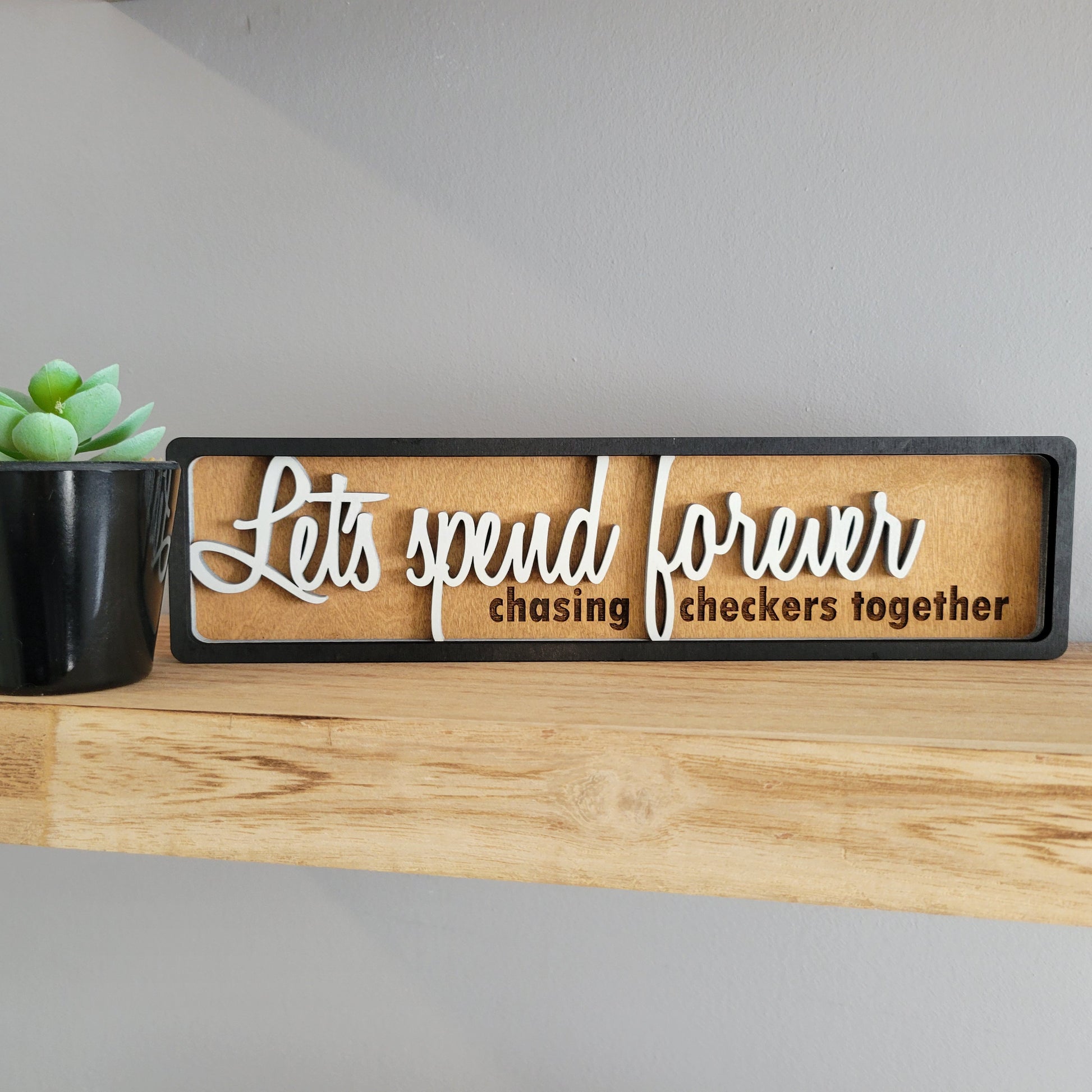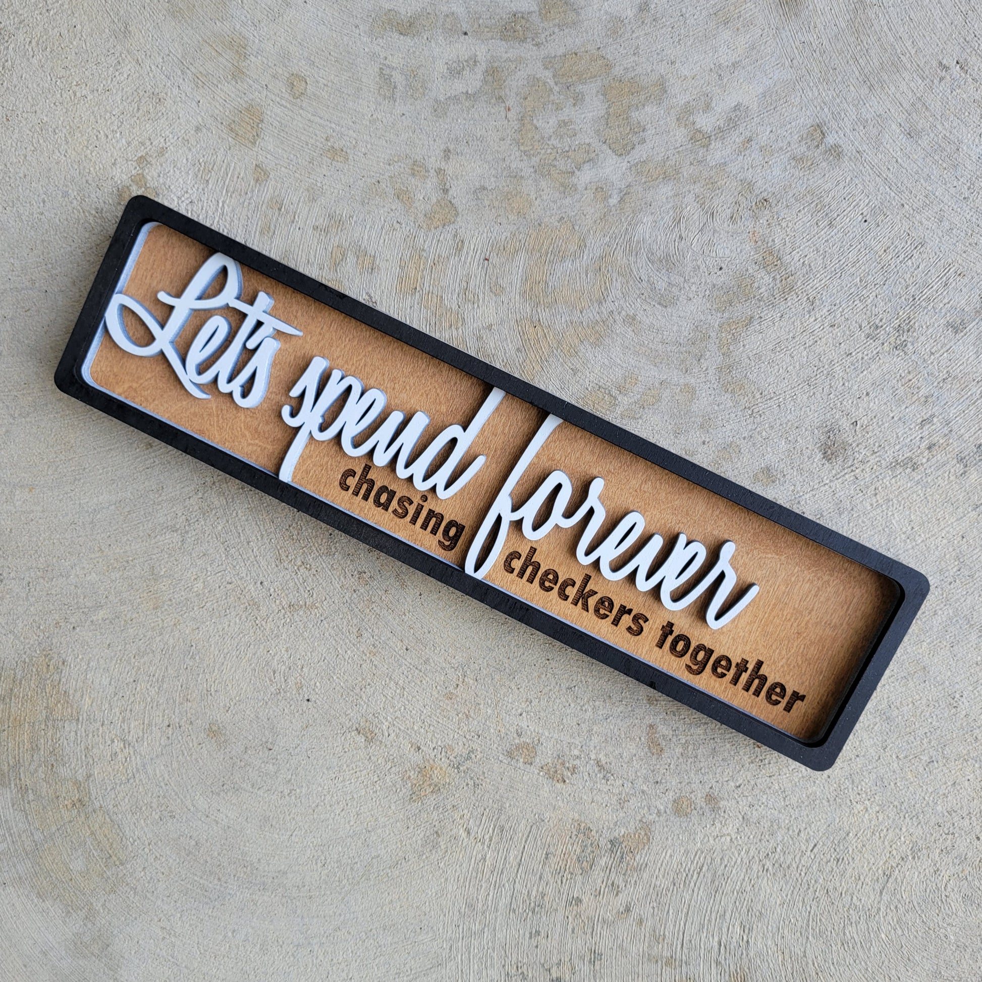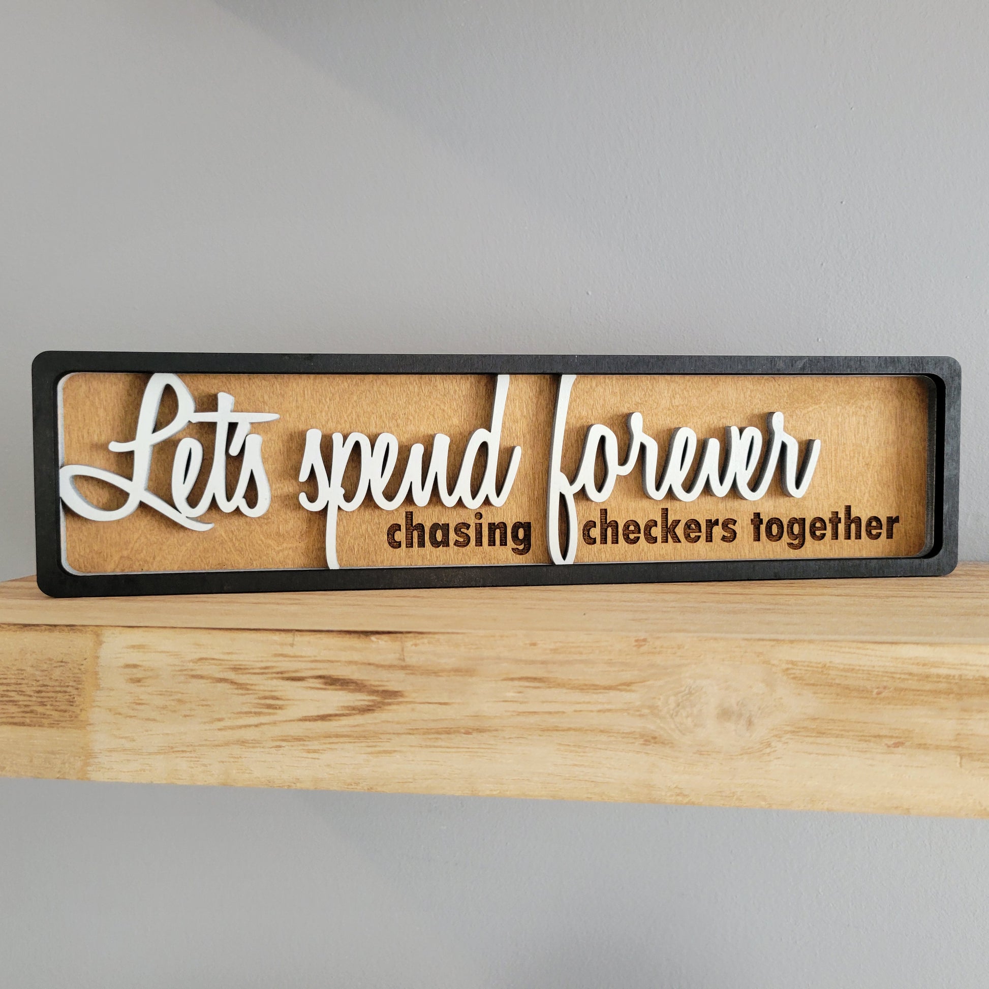 Let's Spend Forever Chasing Checkers Together Stacked Wood Sign