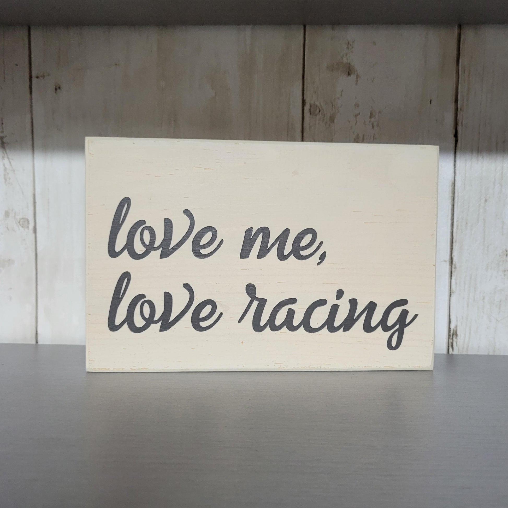 Love Me Love Racing Scrappy Wood Sign
