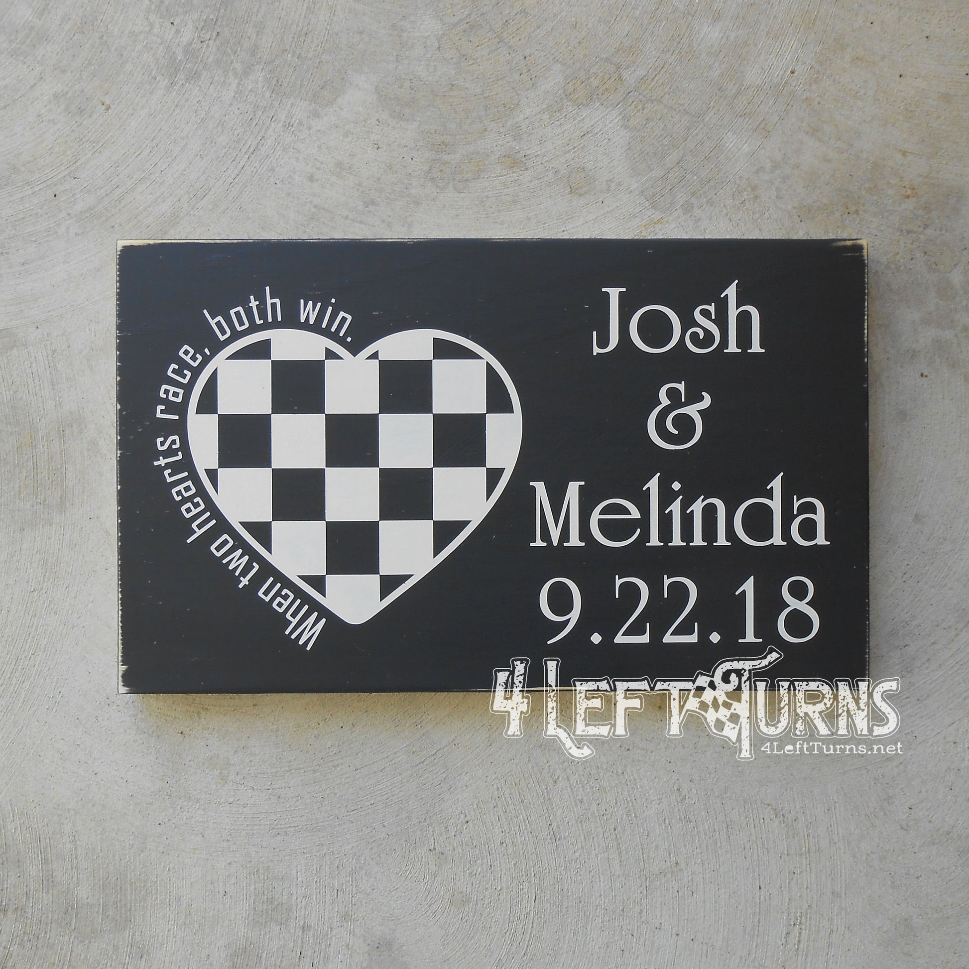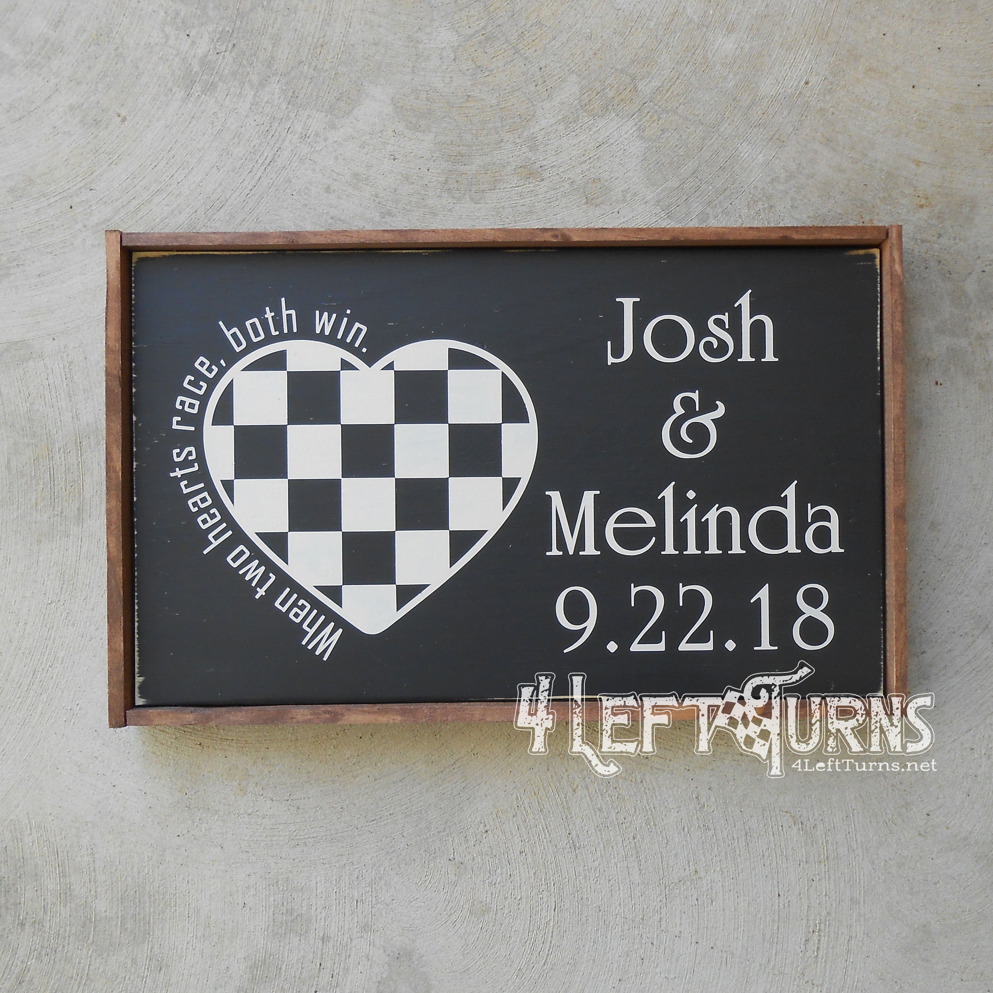 Personalized When Two Hearts Race Both Win Wood Sign