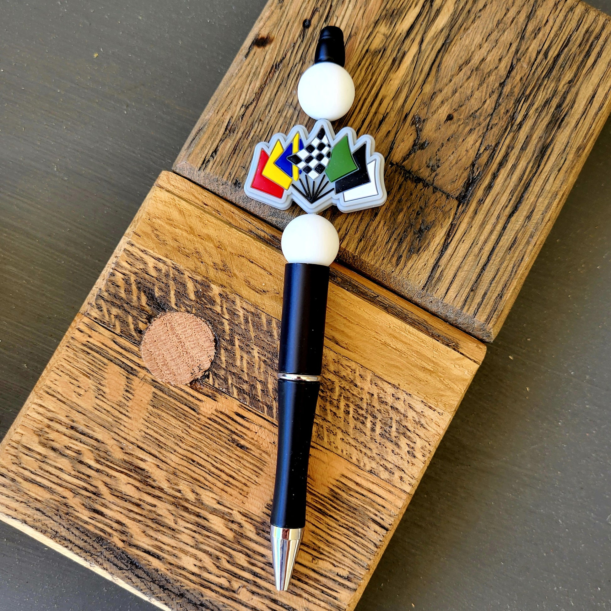 IMPORTANT: THERE ARE ONLY ROOM FOR FOUR (4) BEADS TOTAL ON EACH PEN! (Three beads total on the crossed flags pen.) PLEASE PAY CAREFUL ATTENTION TO THE DESIGN YOU CHOOSE AND THE COLORS AND FOLLOW THE INSTRUCTIONS. IF YOU CHOOSE MORE BEADS THAN WILL FIT ON THE PEN, YOU WILL RECEIVE ONLY ONE OF THE COLORS OF YOUR CHOICE!