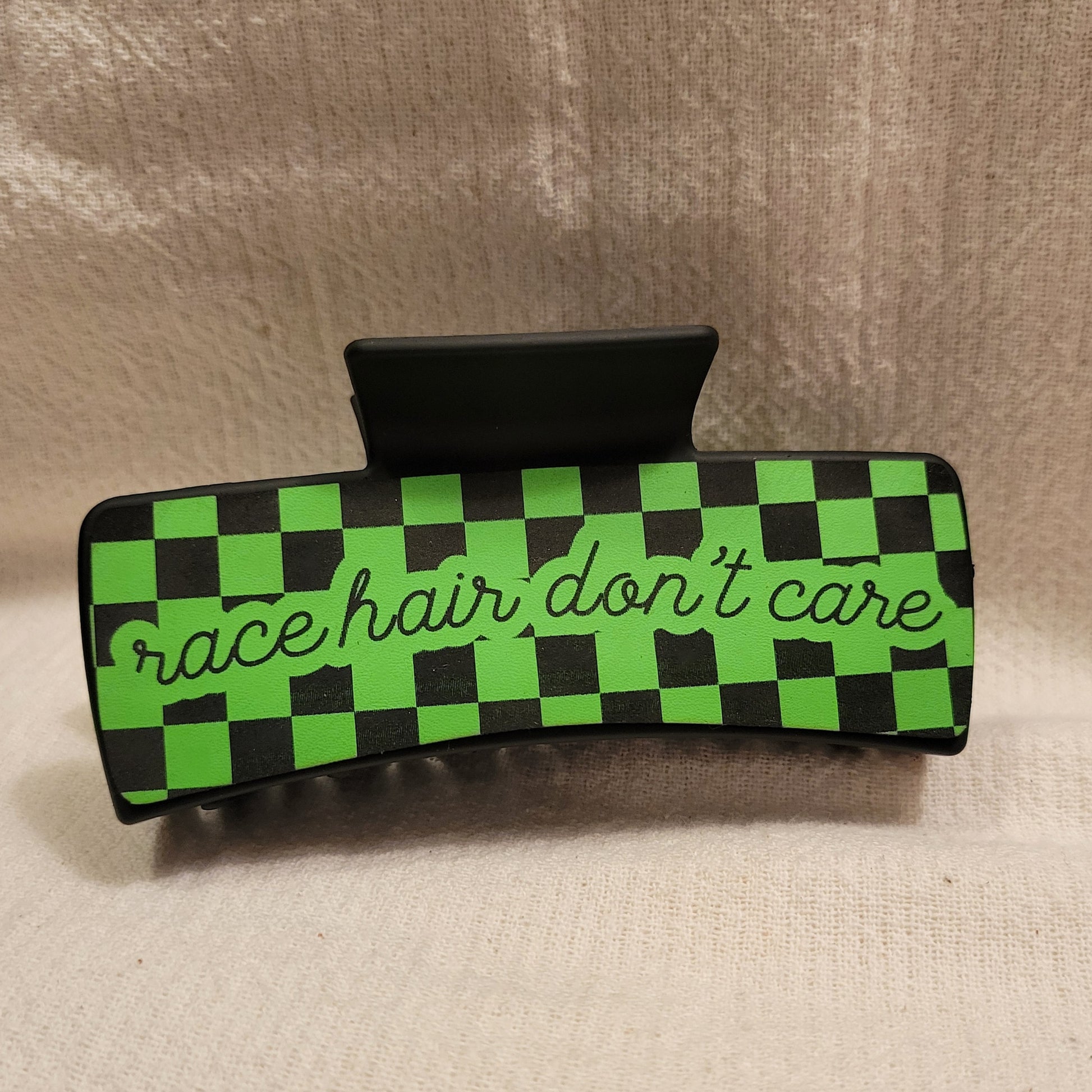 This four inch claw clip is perfect for race days or any time. Put up that pony tail or dress up your messy bun. Choose from lots of fun colors, including some carbon fiber looks. Leatherette engraved in lots of color options, including some Carbon Fiber looks, which are indicated by a CF.