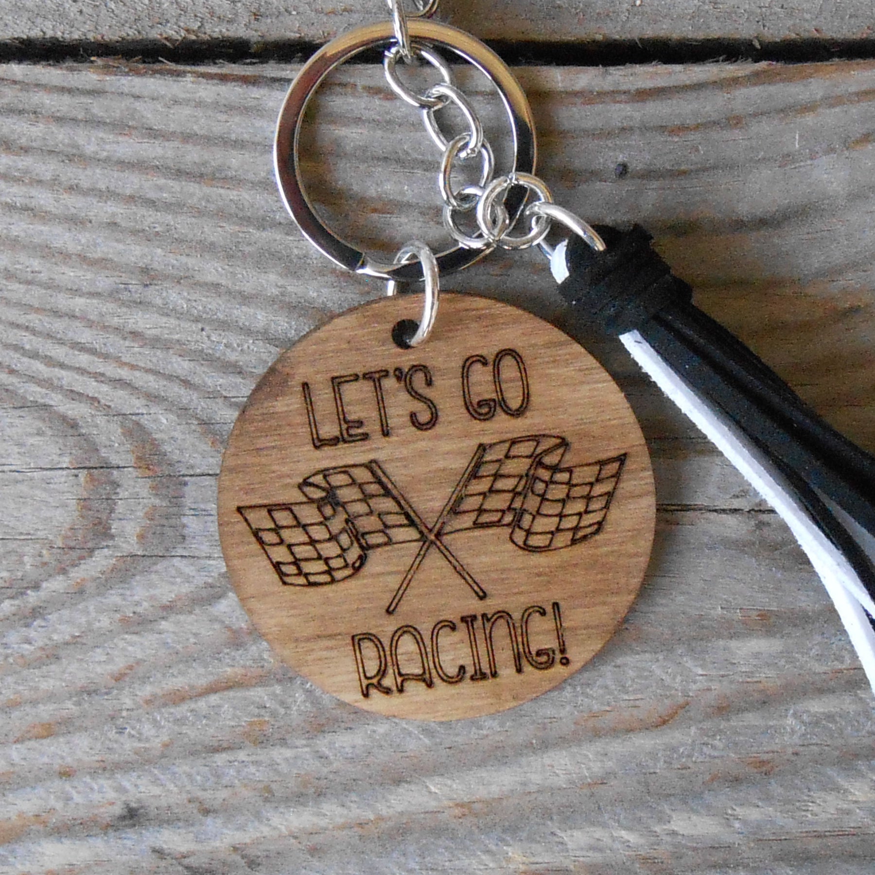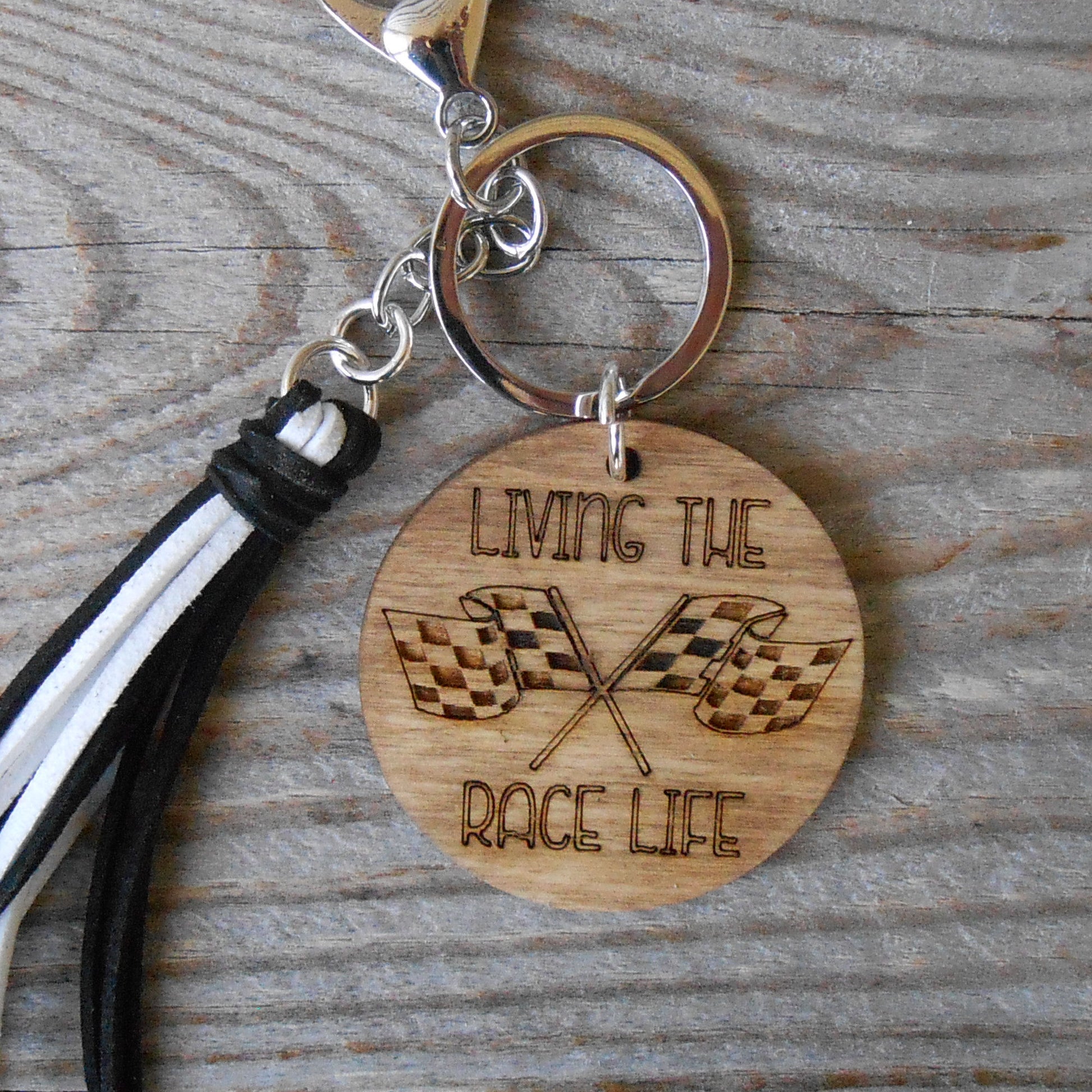 Wavy Checkered Flag Silicone Bead Wristlet Bracelet Key Ring with Charm