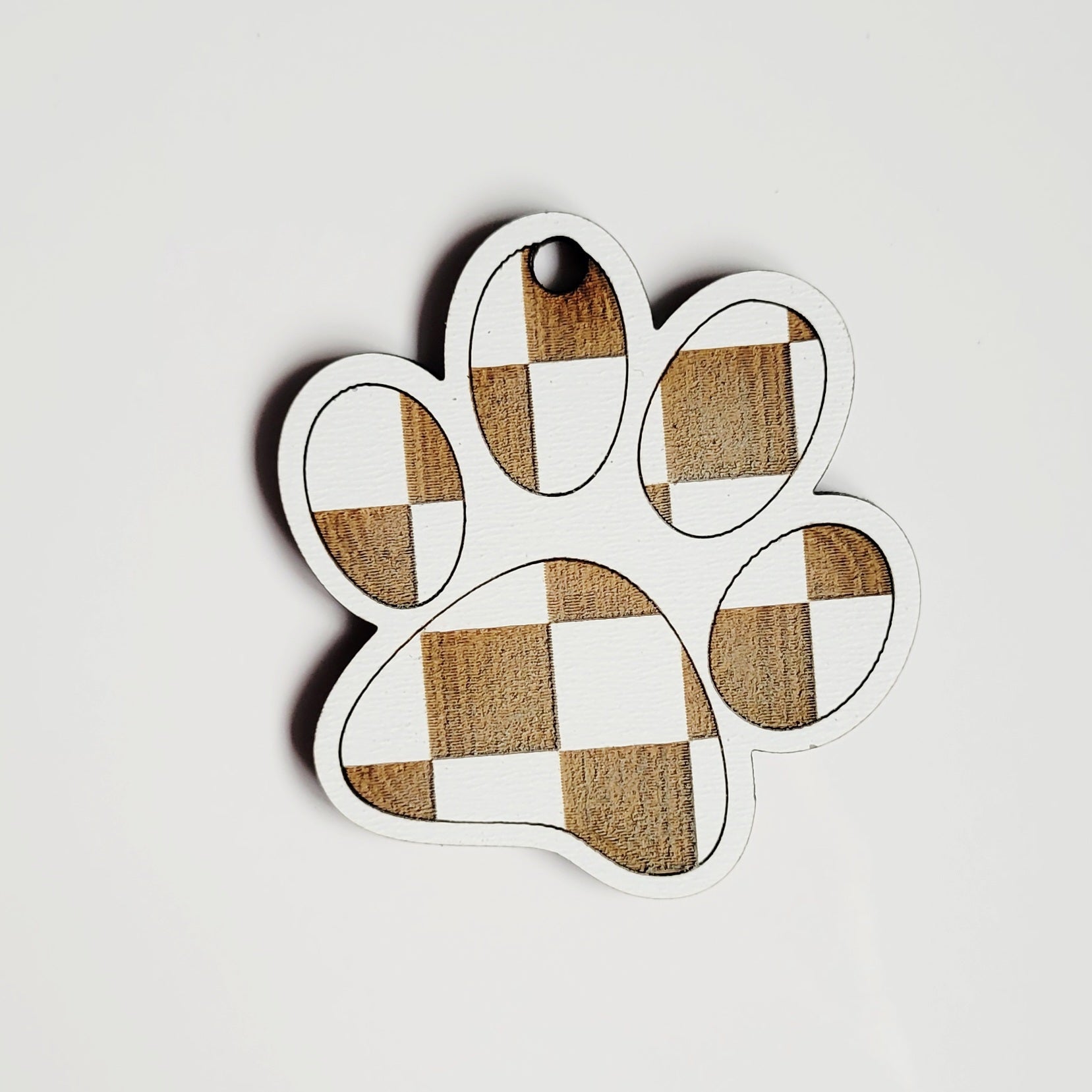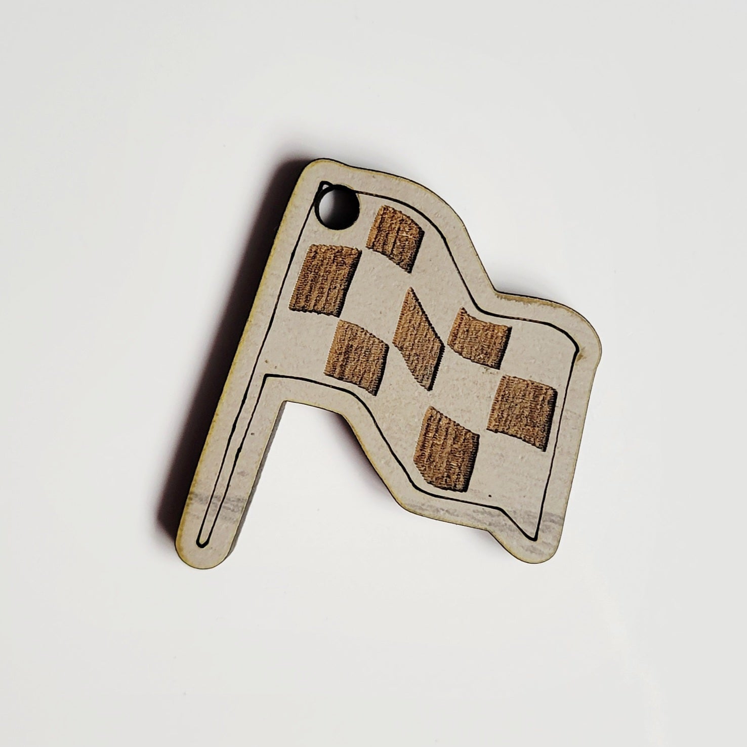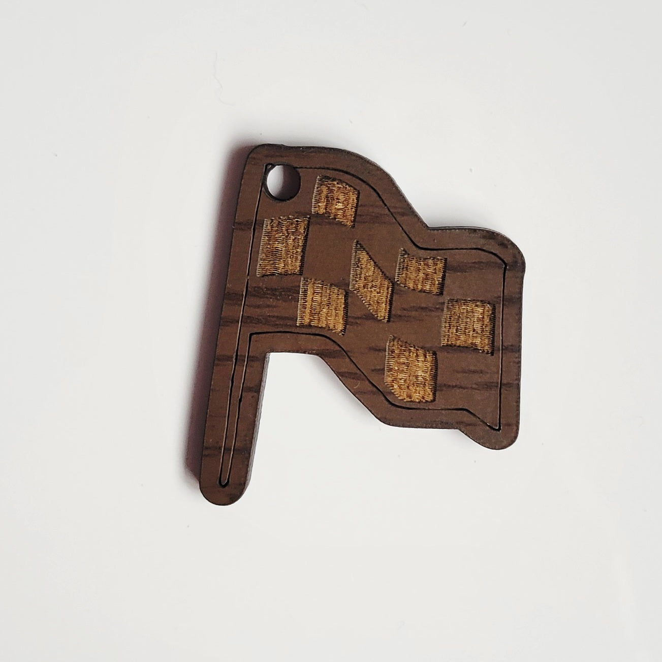 Charms are made of pre-painted or stained wood. Round ones measure about two inches across, flag is about on and one-eighth inch across. Each comes with a split ring for adding to your wristlet or lanyard.