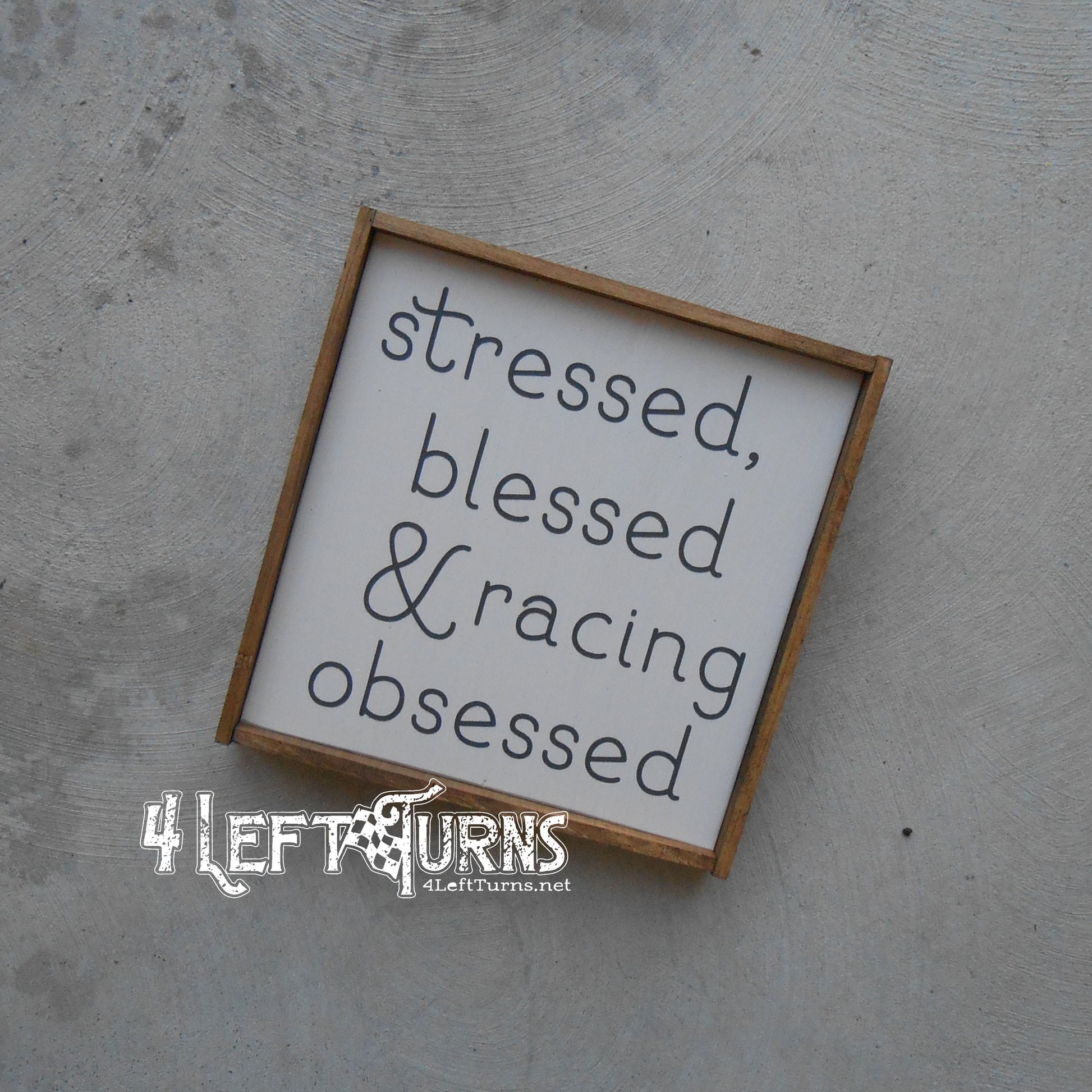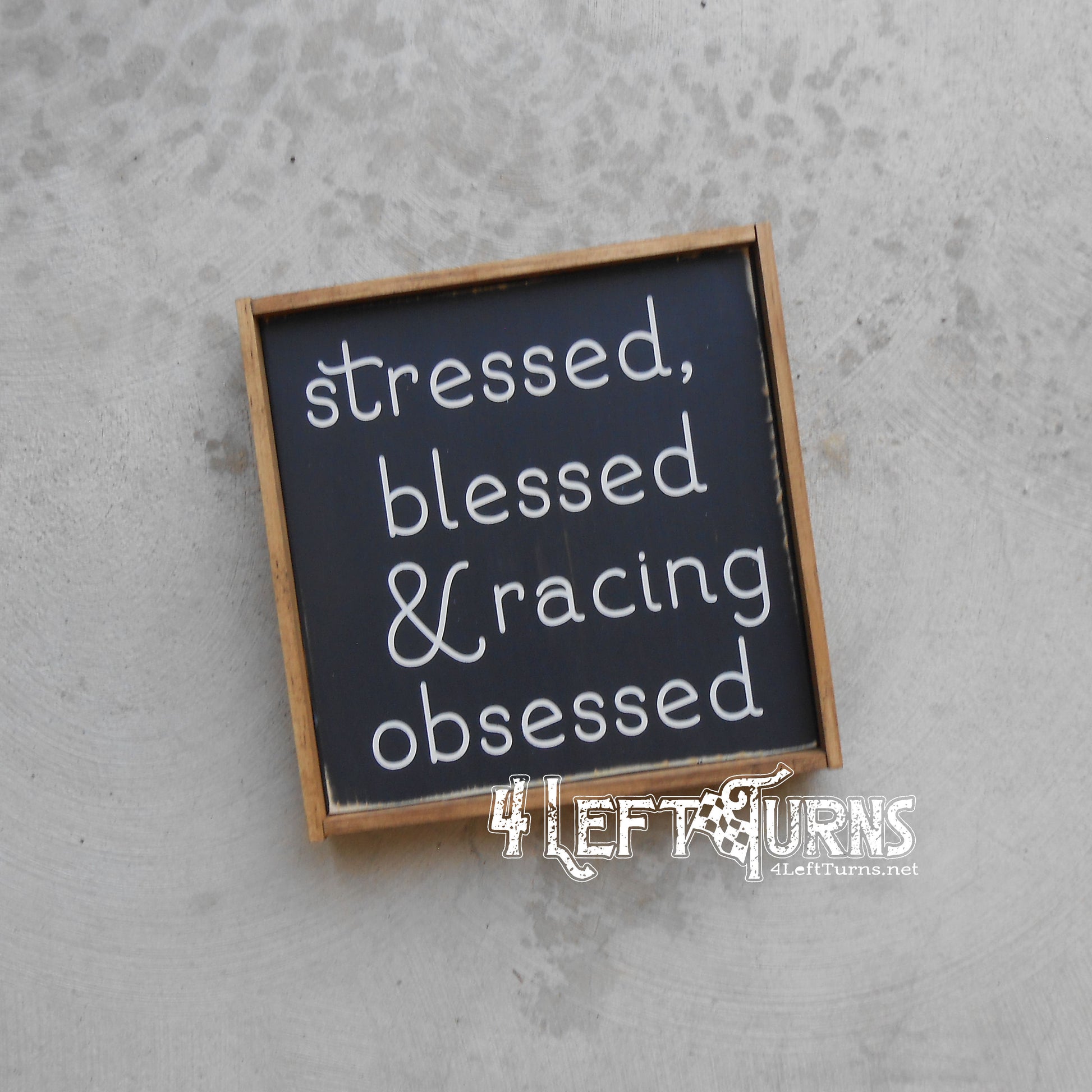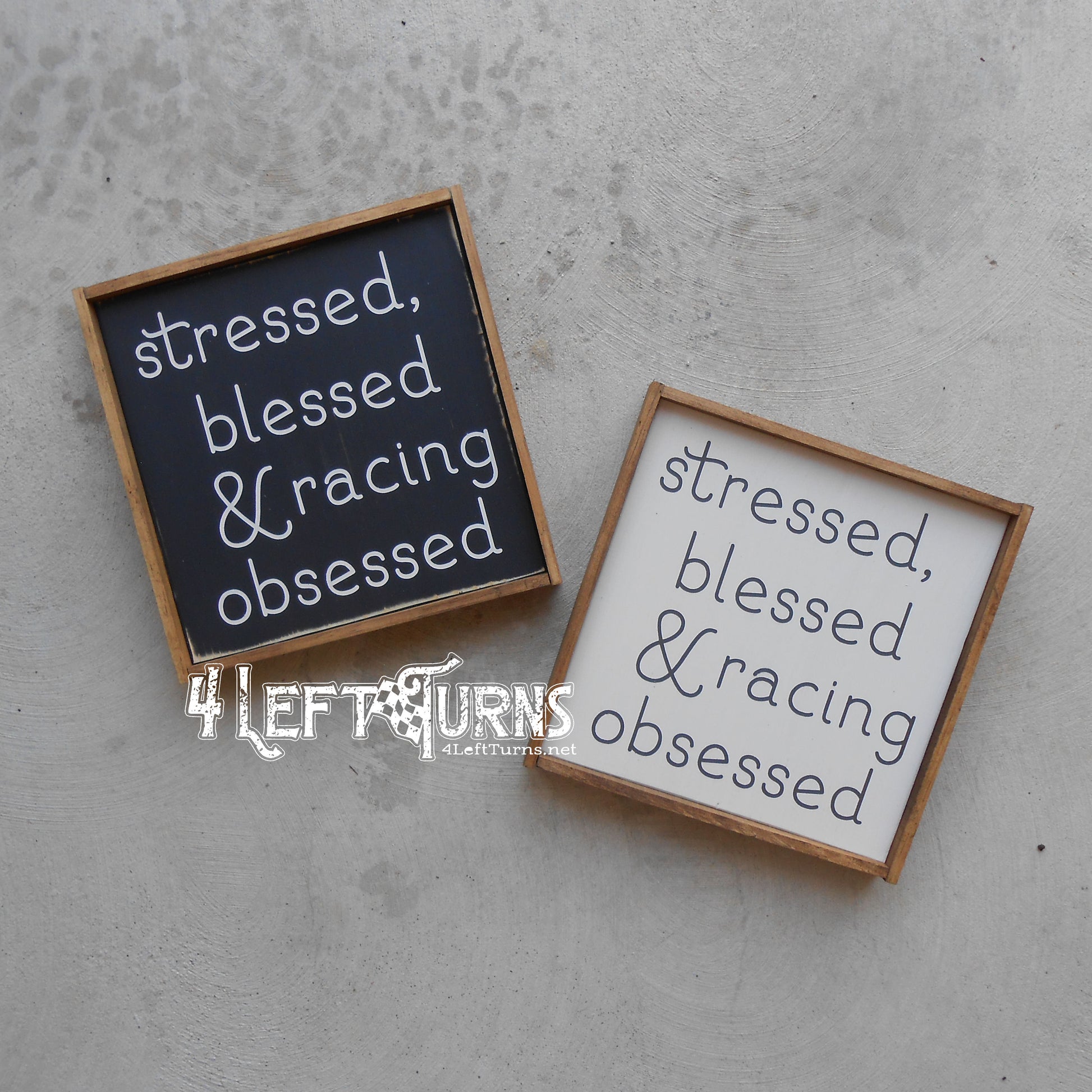 Stressed Blessed & Racing Obsessed Painted Wood Sign