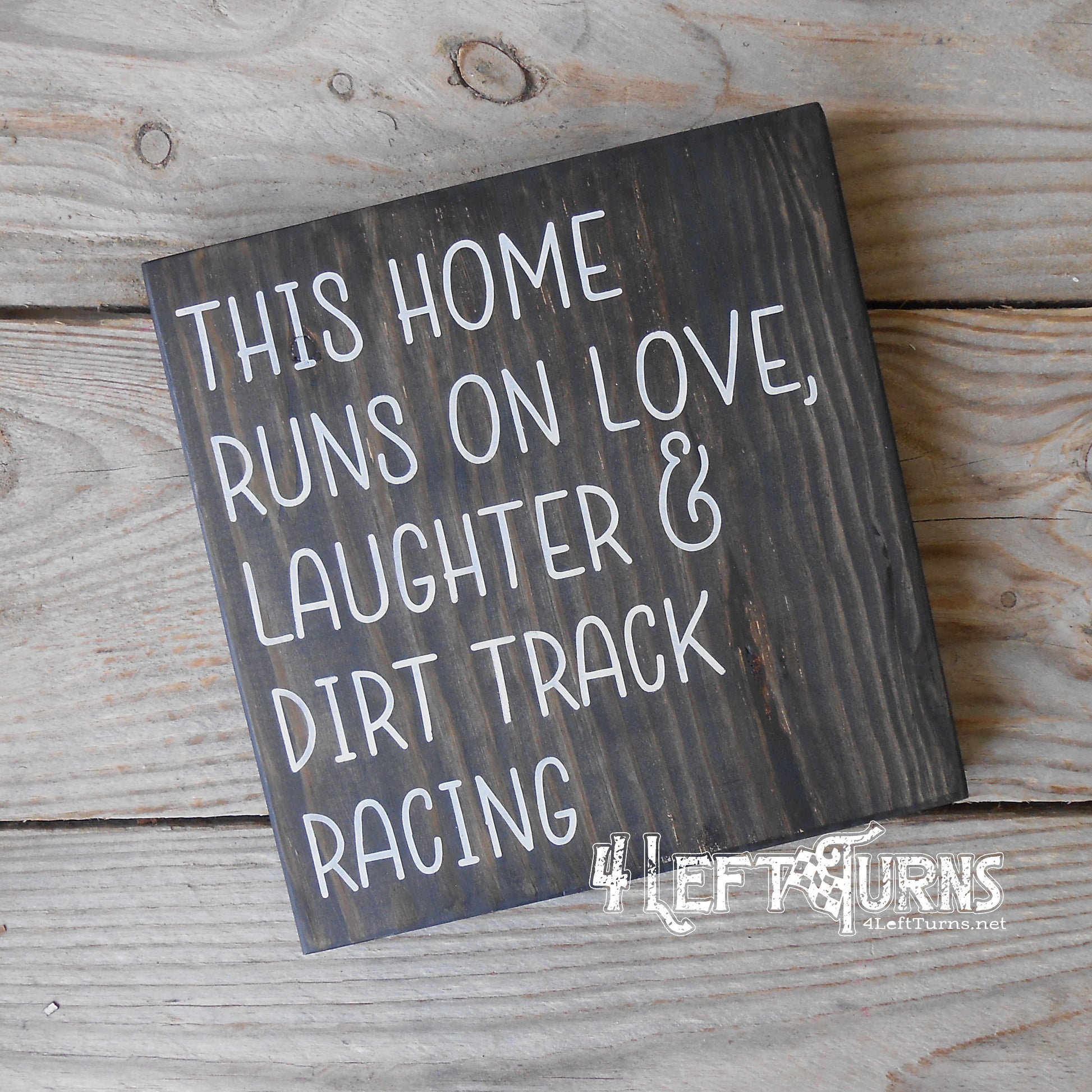 This Home Runs on Love, Laughter & Dirt Track Racing Stained Wood Sign