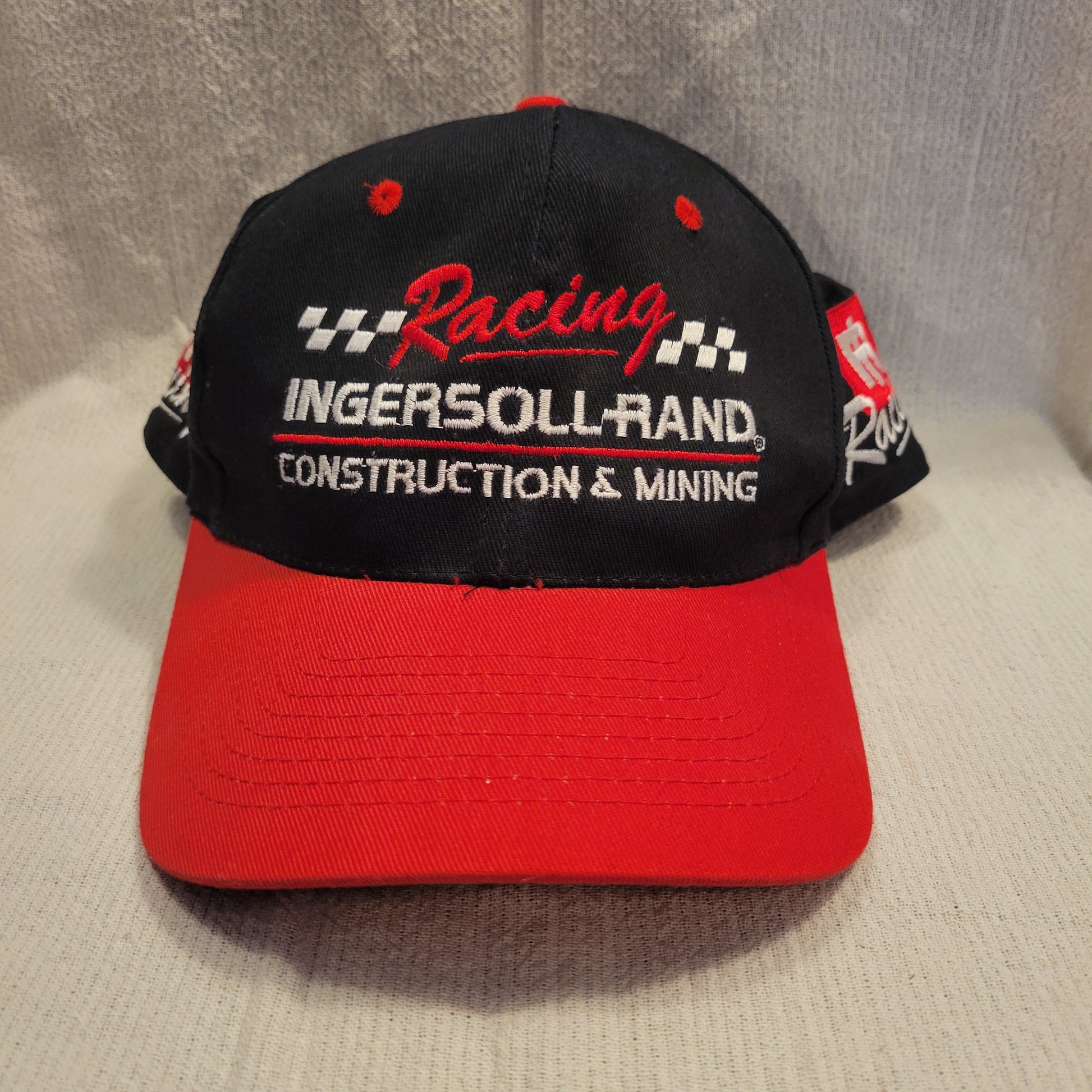 This Black and Red Ingersoll Rand Stevie Smith ball cap is from my personal collection. It may or may not have been worn and is in really good condition. It has a plastic snap band for adjusting the size. The autograph is on the underside of the bill.