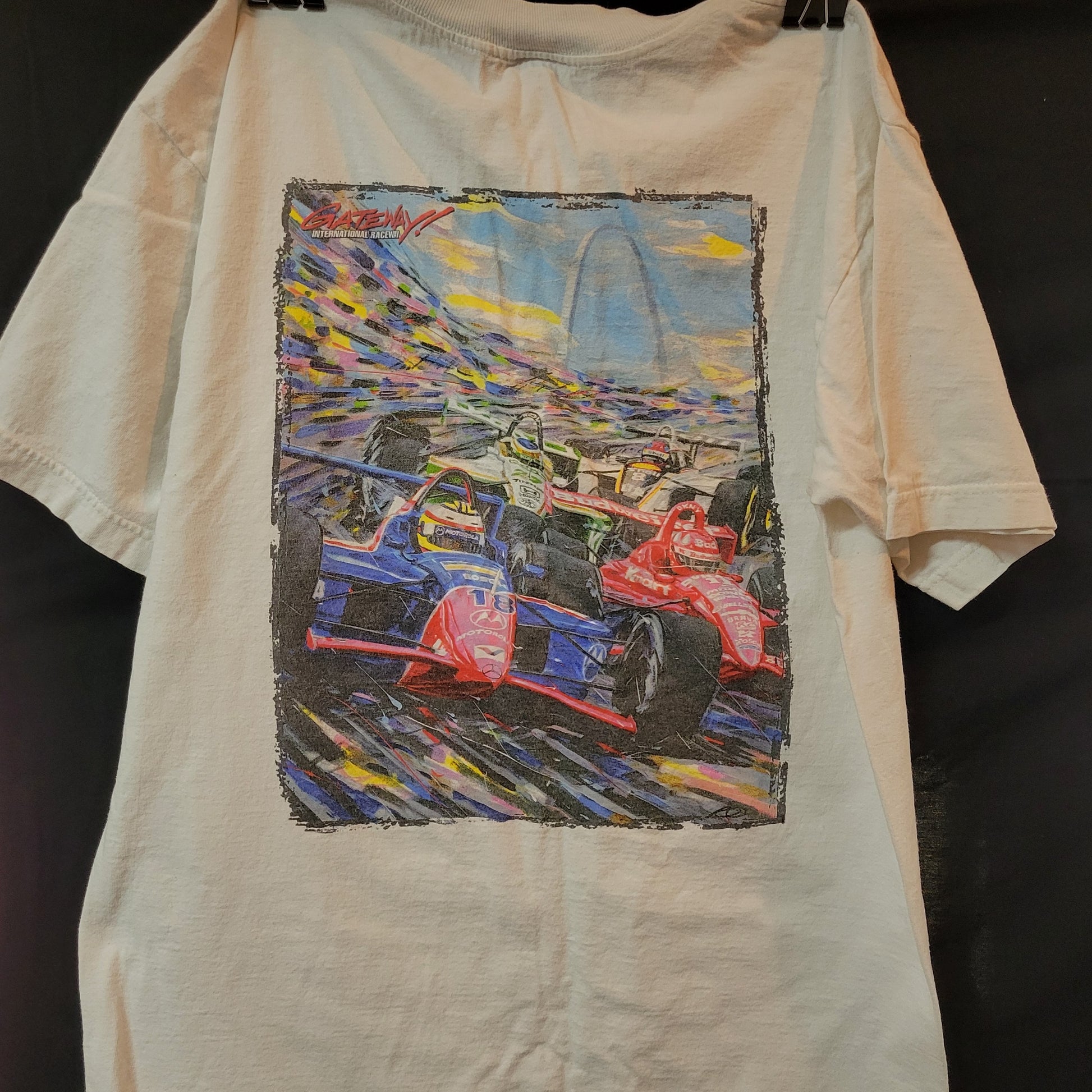 This 1997 Inaugural Motorola 300 Gateway Raceway short-sleeved t-shirt is from my personal collection. It has been worn and washed several times but it shows no obvious stains, rips or holes.