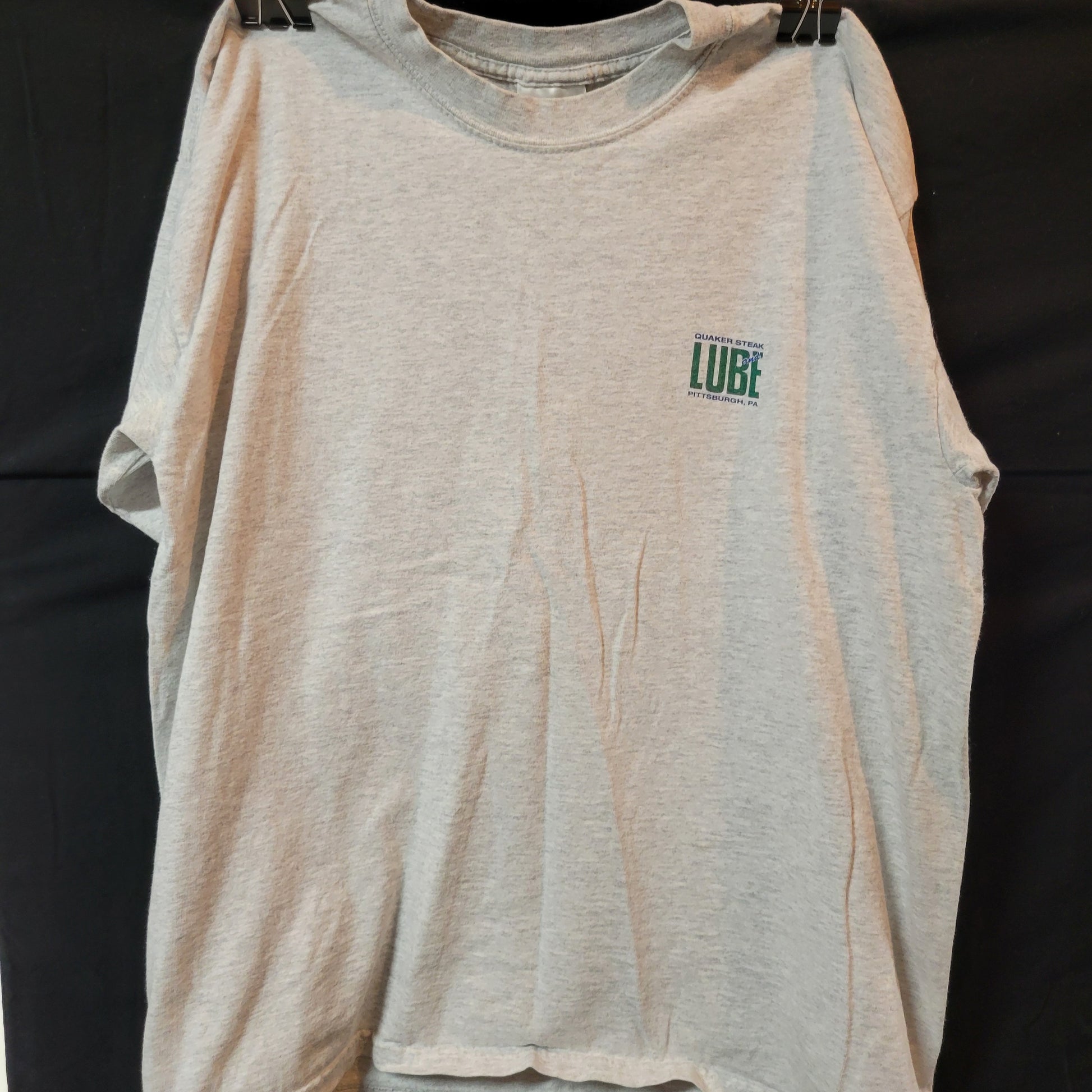 This short-sleeved Quaker Steak 'n Lube t-shirt is from my personal collection. It has been worn and washed several times but it shows no obvious stains, rips or holes.