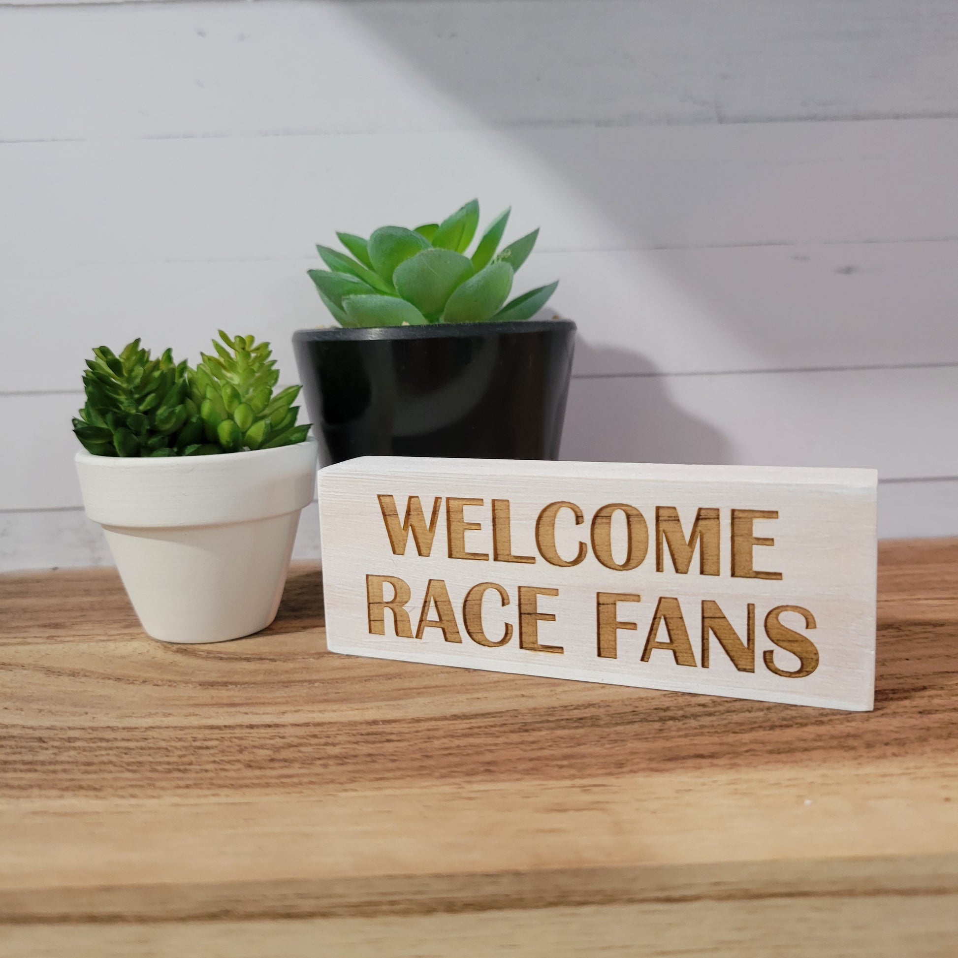 Welcome Race Fans Laser Engraved Mini Wood Sign