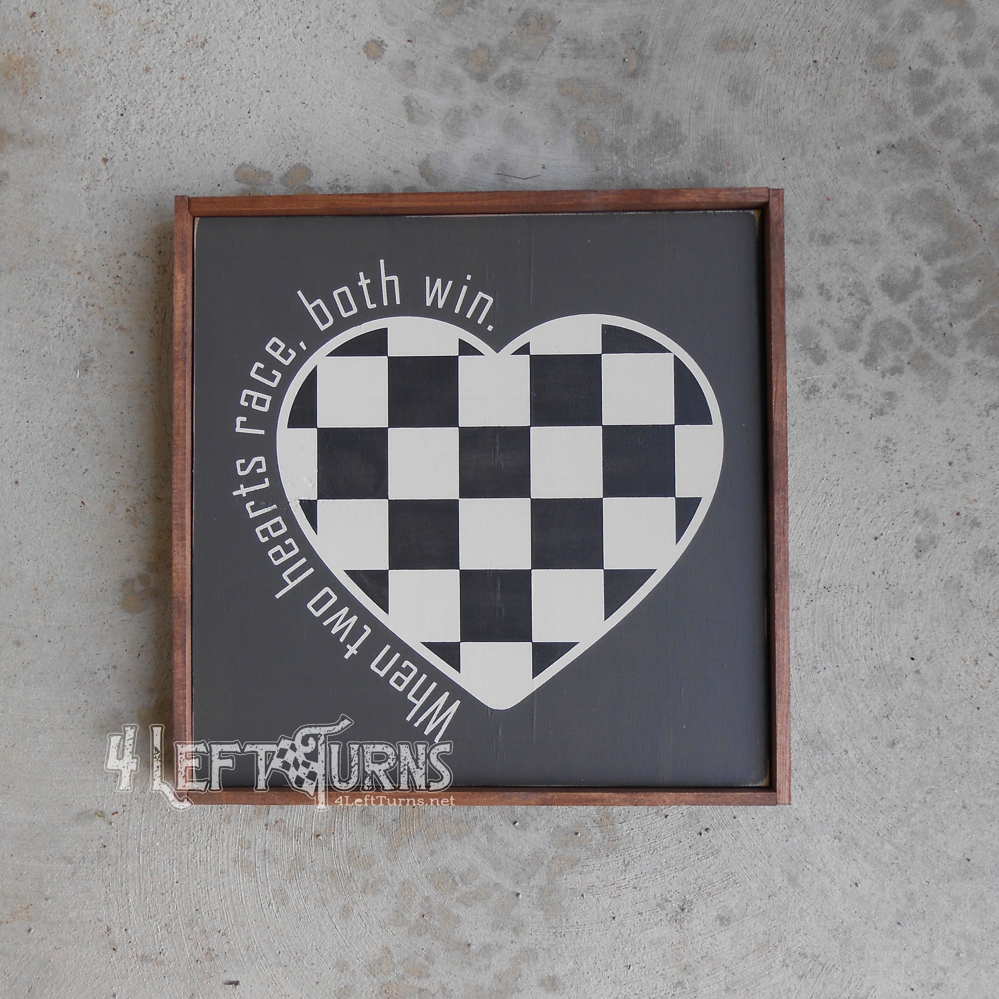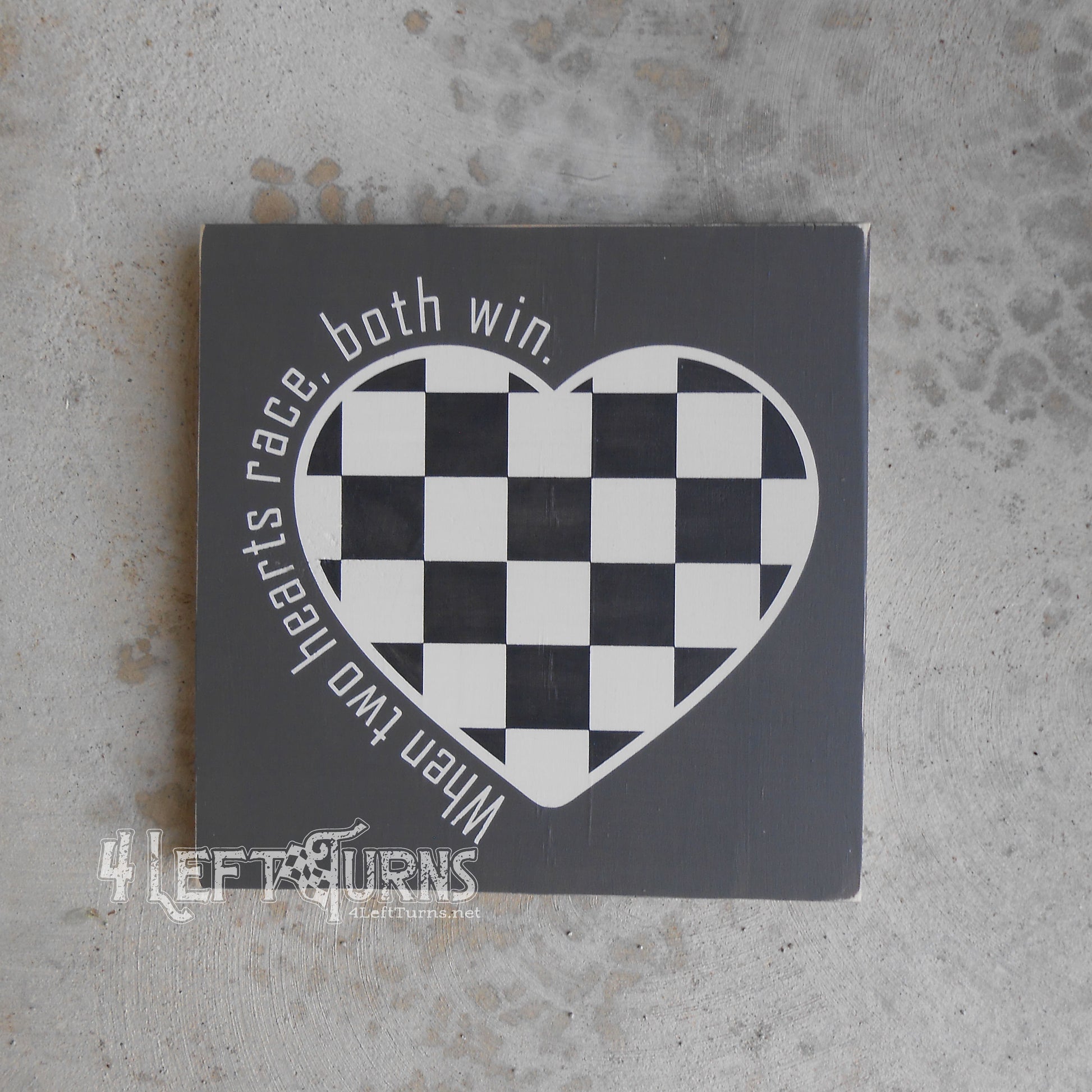 When Two Hearts Race Checkered Heart Painted Wood Sign